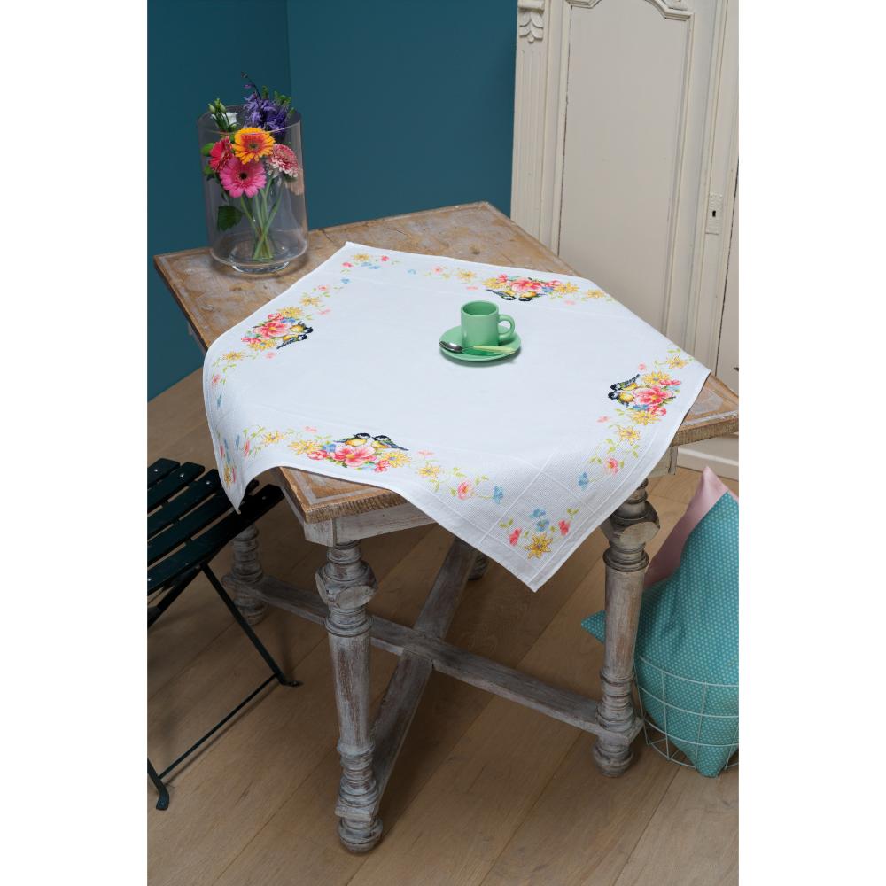 Tablecloth Counted Cross Stitch Kit ~ Tits & Spring Flowers