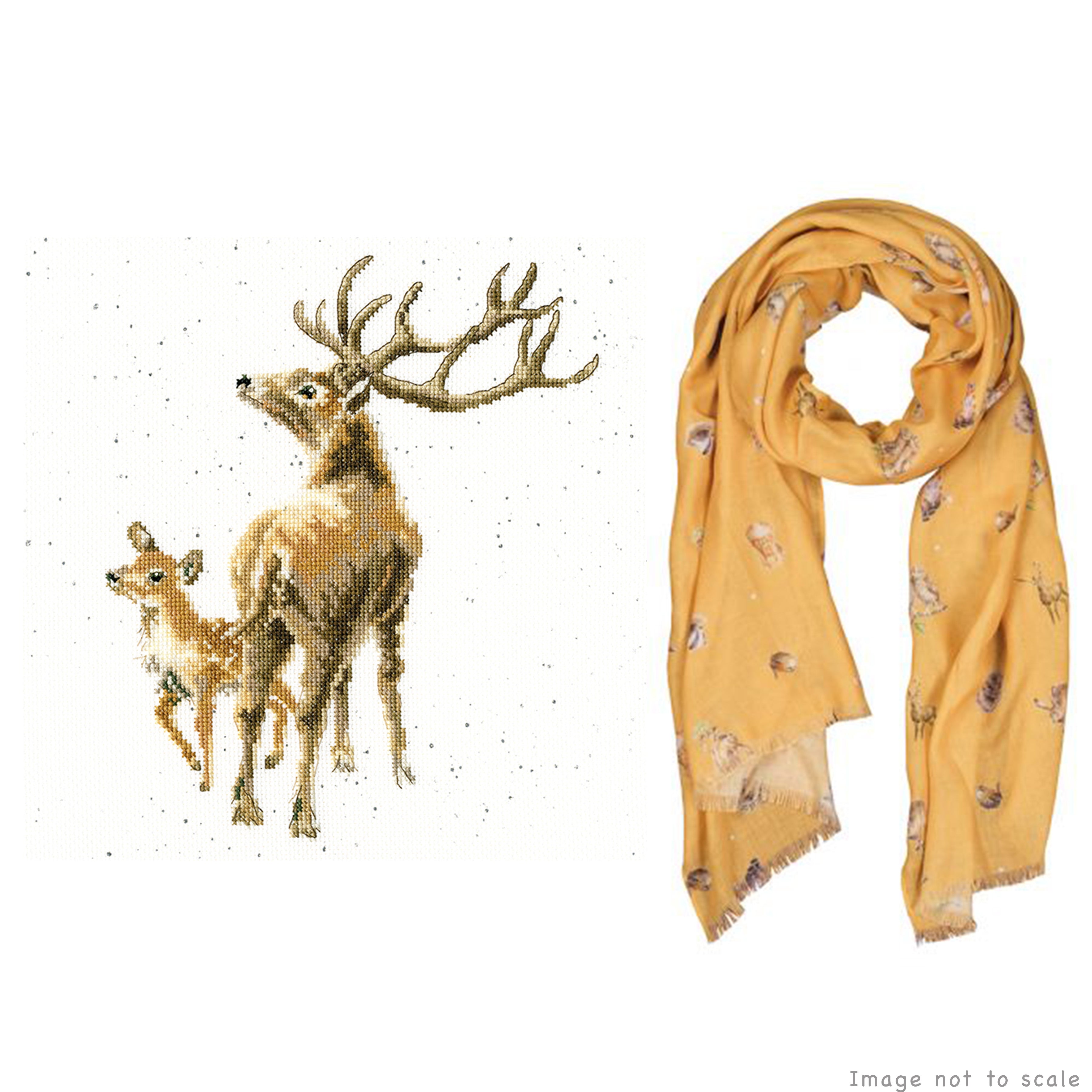 Wild at Heart Gift Set - Cross Stitch Kit, and Mustard Woodlands Scarf