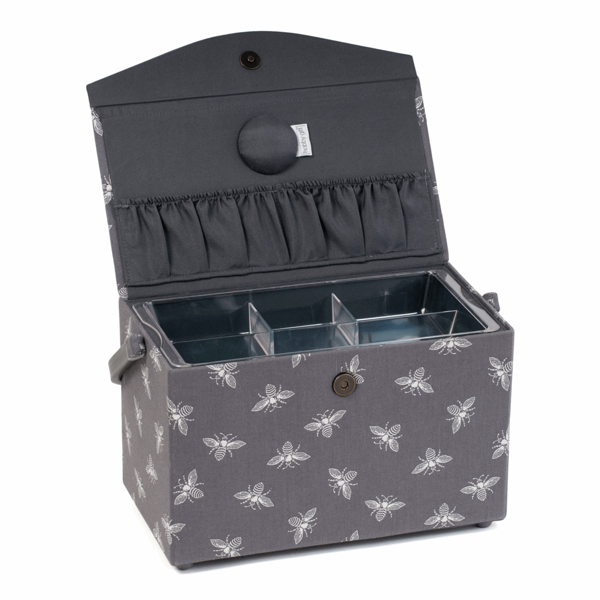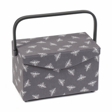 Hobbygift ~ Sewing Basket / Box ~ Fold Over Lid ~ Grey Bees