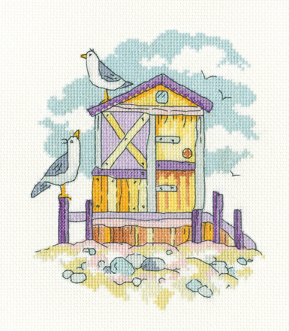 Yellow Beach Hut Cross Stitch Kit - Heritage Crafts