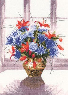 Heritage Crafts ~ Counted Cross Stitch Kit ~ Window Flowers ~ Brass Vase