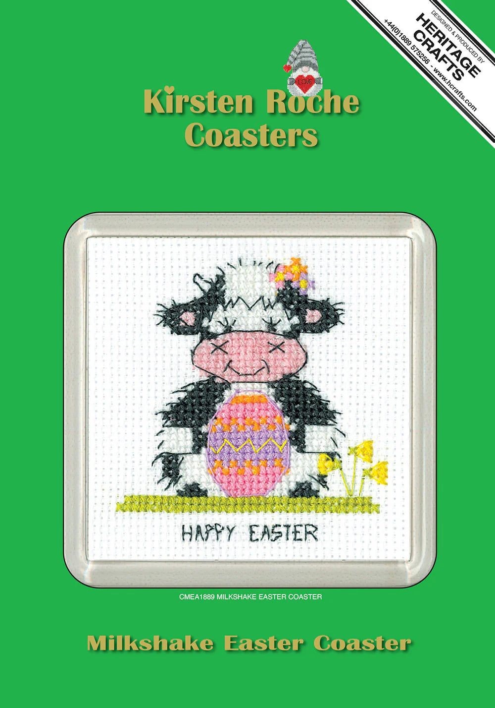 Heritage Crafts ~ Counted Cross Stitch Kit ~ Milkshake the Cow Easter Coaster