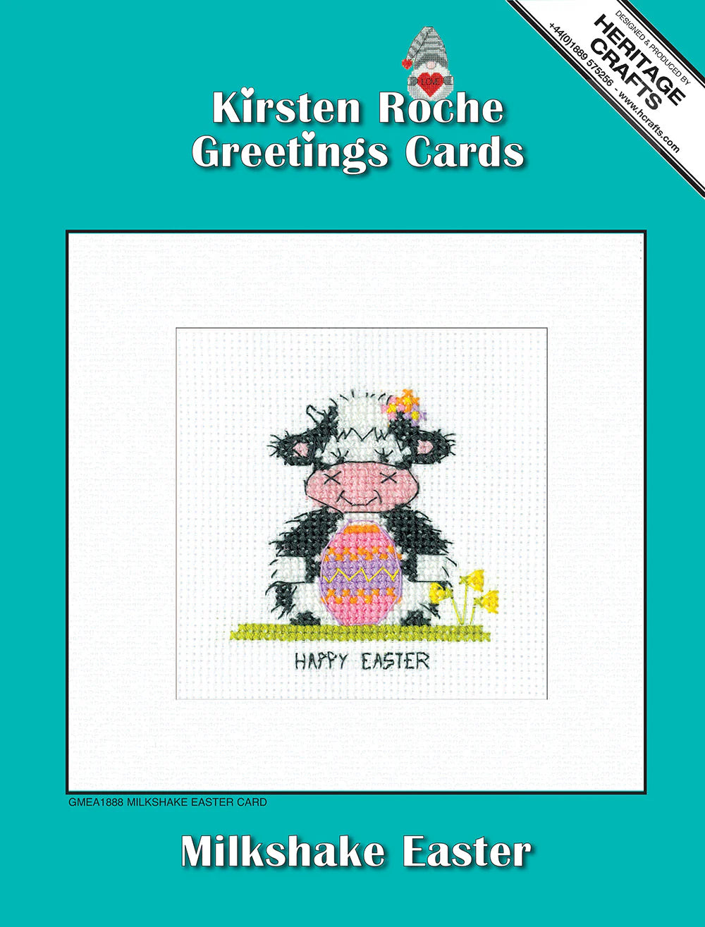 Heritage Crafts ~ Counted Cross Stitch Kit ~ Milkshake the Cow Easter Card