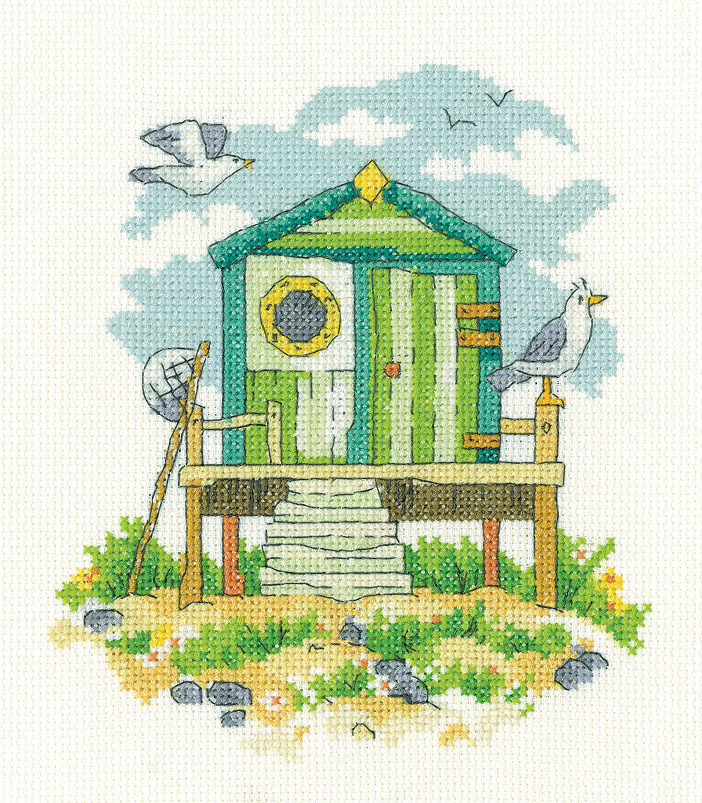 Green Beach Hut Cross Stitch Kit - Heritage Crafts