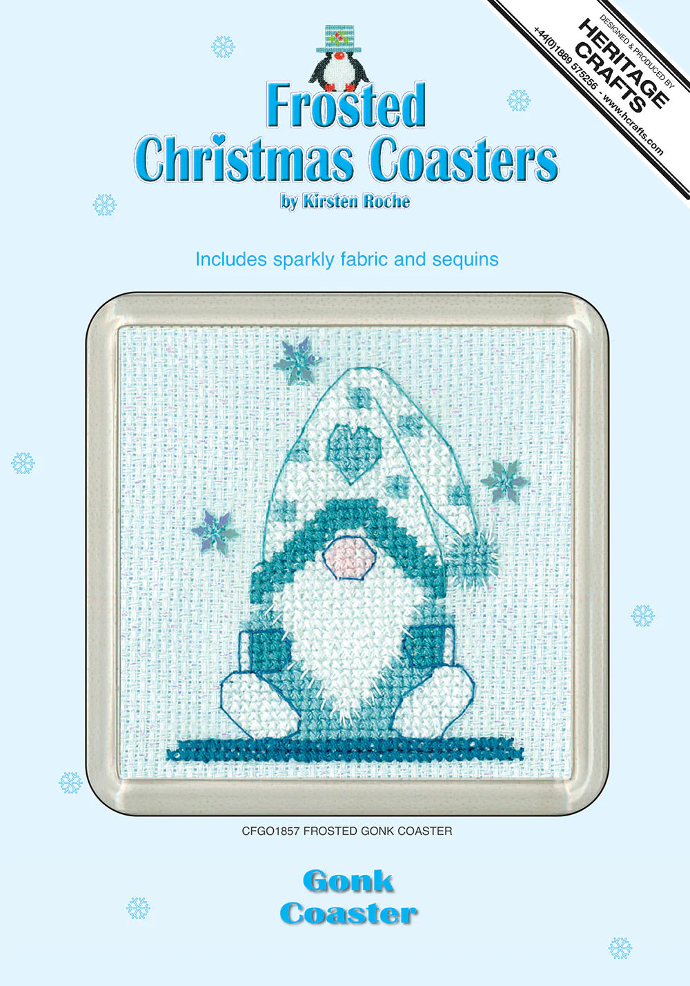Gonk Frosted Coaster Cross Stitch Kit - Heritage Crafts