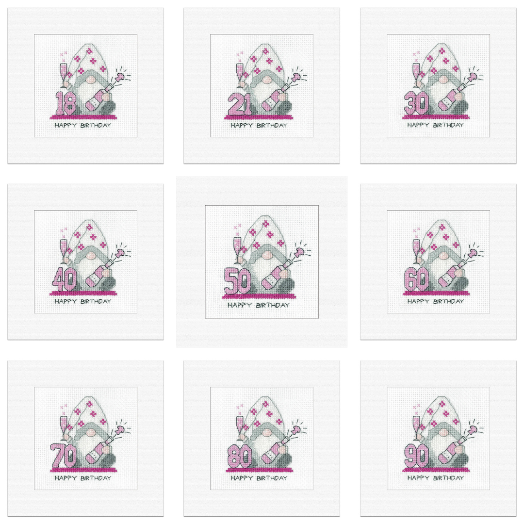 Pink Gonk Birthday Card Cross Stitch Kit - All Ages