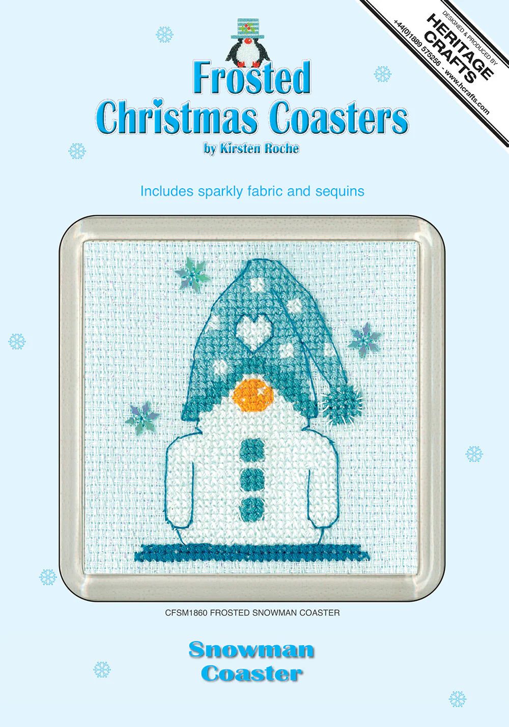 Heritage Crafts ~ Counted Cross Stitch Kit ~ Snowman Frosted Coaster