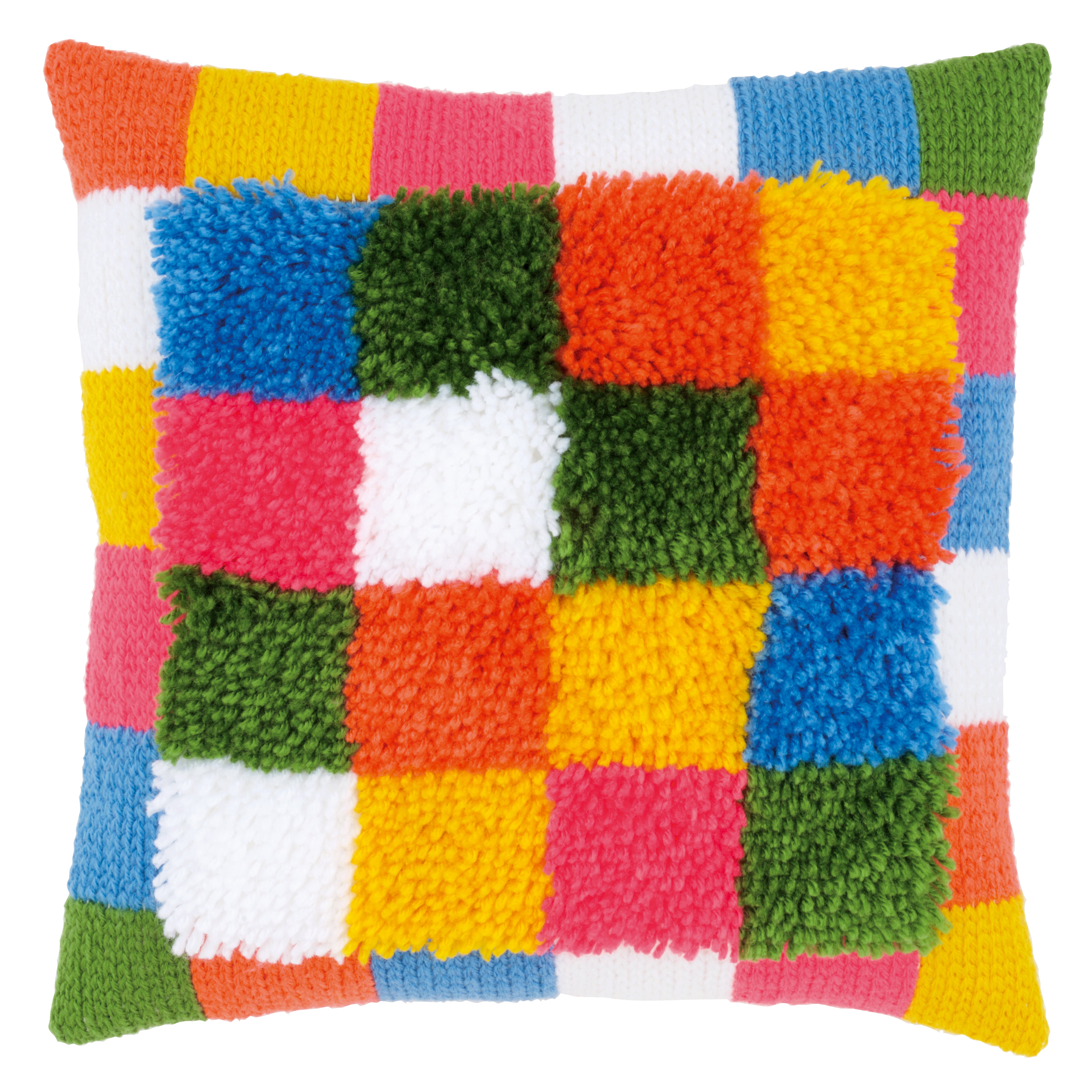 Cushion Latch Hook & Chain Stitch Kit ~ Bright Squares