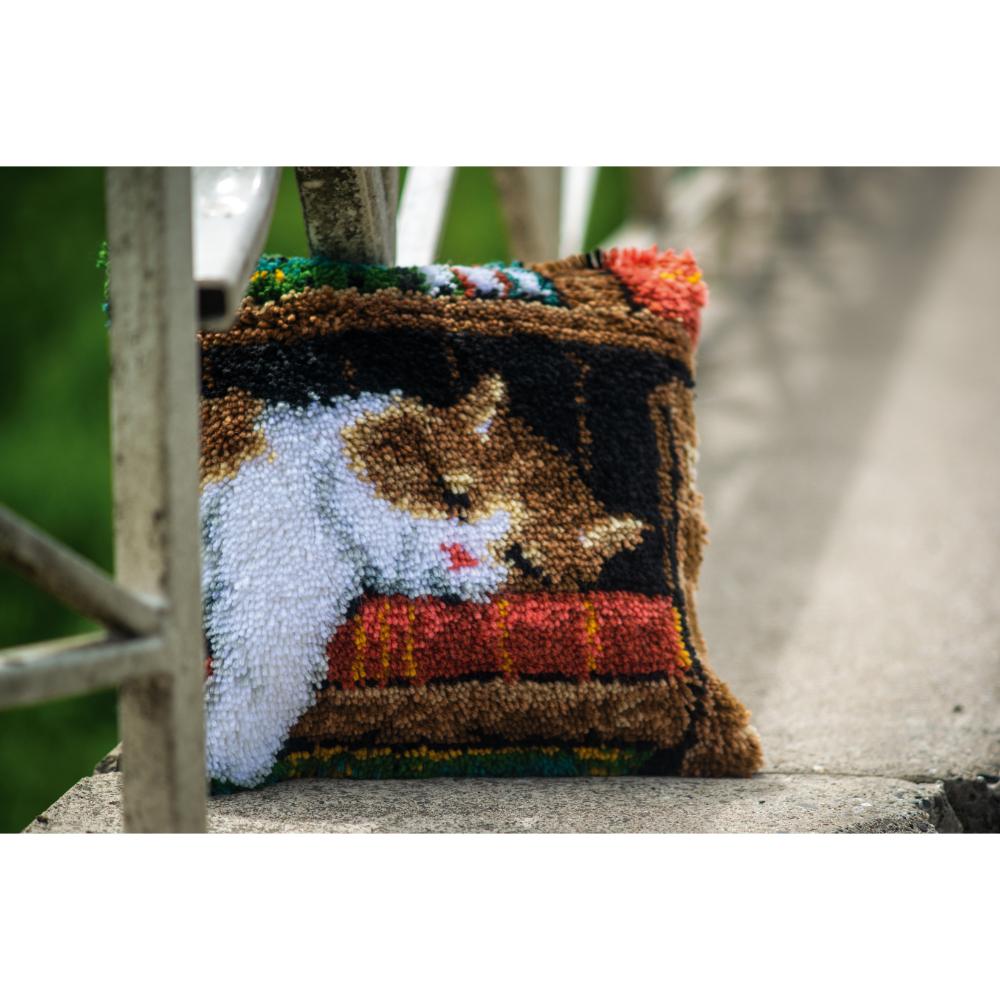 Cushion Latch Hook Kit ~ Cat Sleeping on Bookshelf