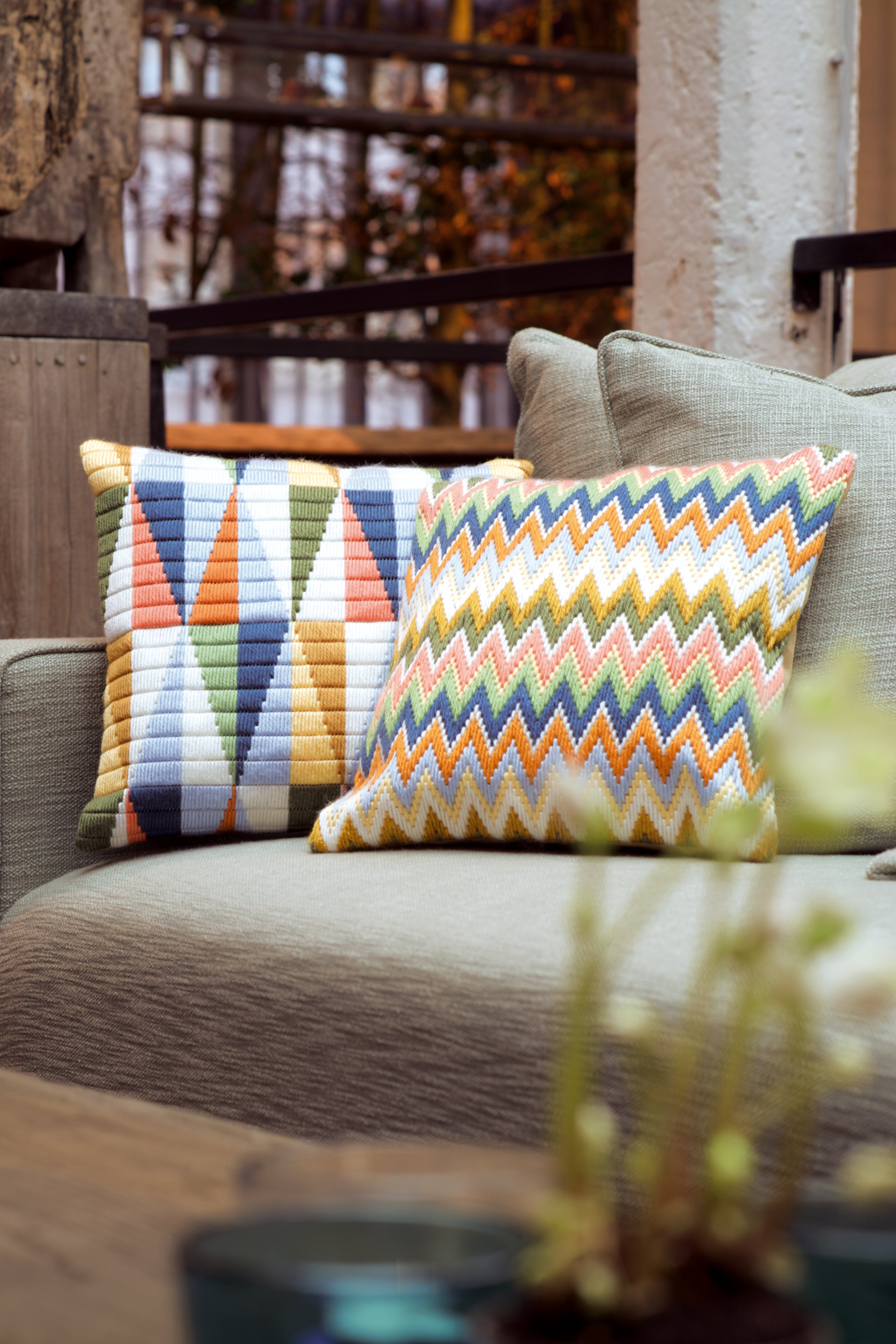 - Kit includes: printed, white, cotton canvas (34 holes/10cm - 8.5 stitches/inch); acrylic yarn; needle; chartered design; front sheet picture; instructions in 8 languages (EN, NL, FR, GER, IT, SP, RU, SW).