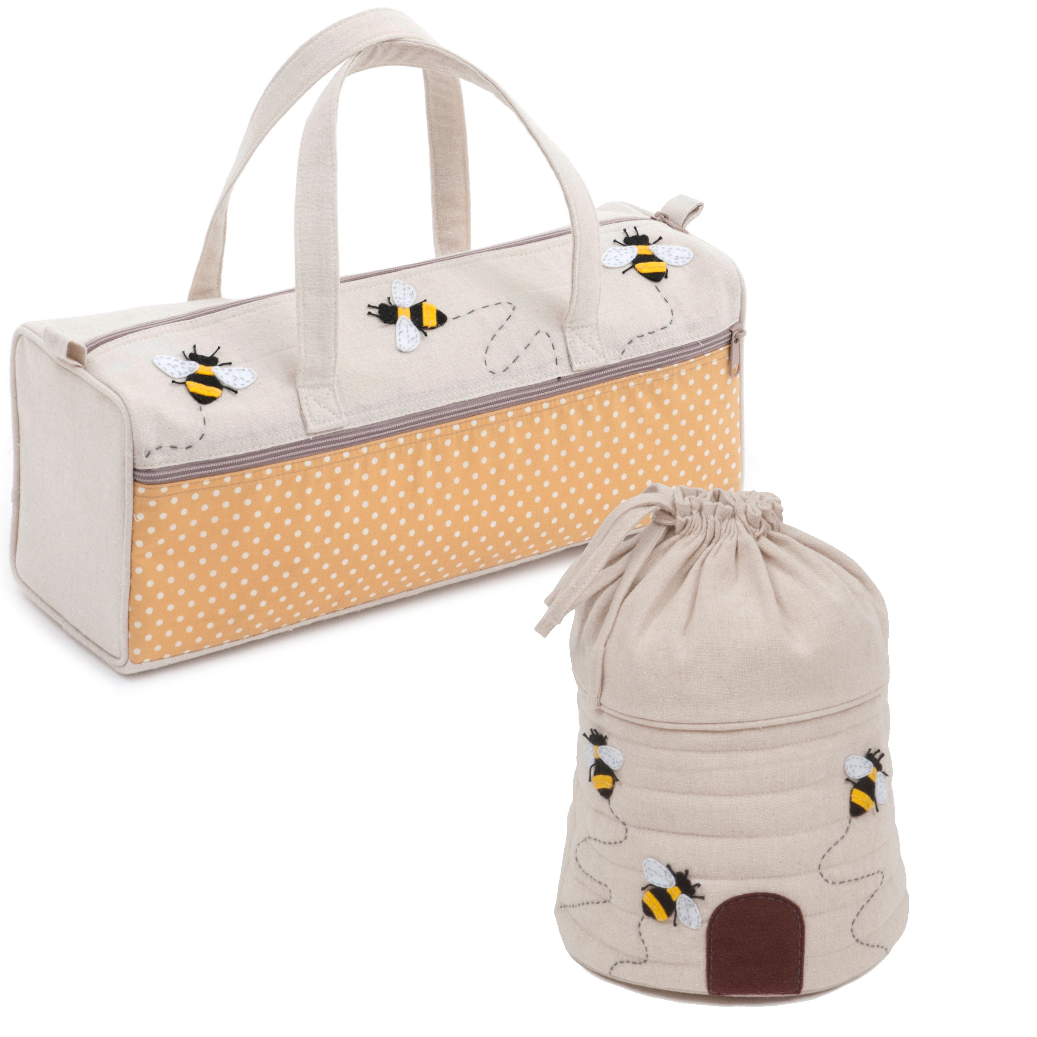 Hobbygift ~ Matching Set ~ Knitting Bag and Drawstring Yarn Holder ~ Bee