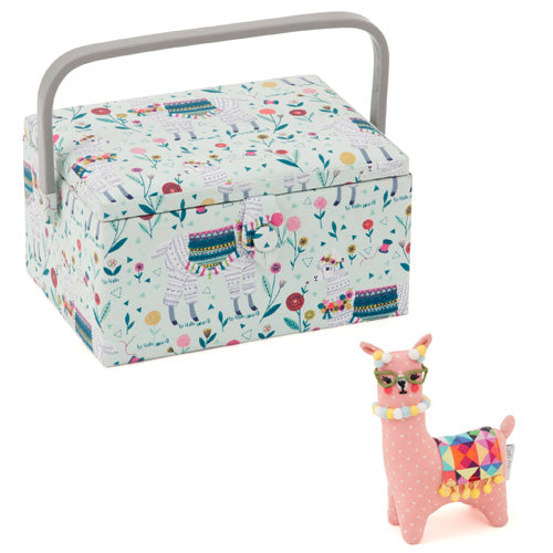 Hobbygift ~ Medium Sewing Box / Basket and Pincushion ~ Llama / Alpaca