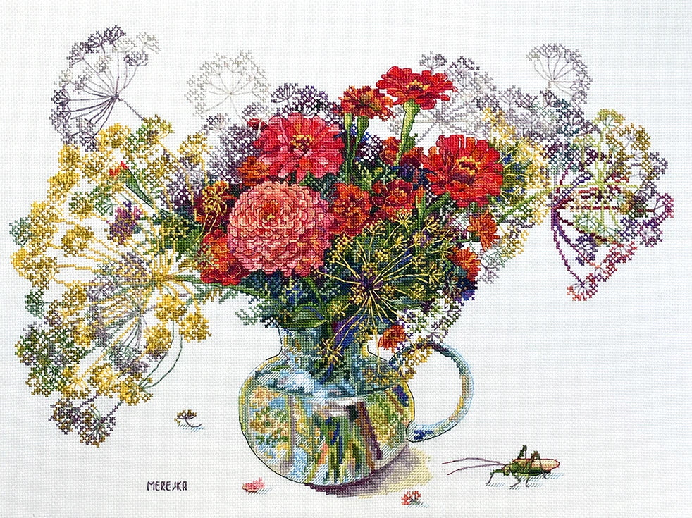 Merejka ~ Counted Cross Stitch Kit ~ Zinnia and Dill
