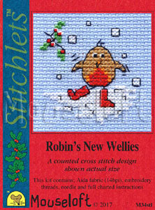 Mouseloft ~ Counted Cross Stitch Kit ~ Stitchlets ~ Christmas Card ~ Robin's New Wellies
