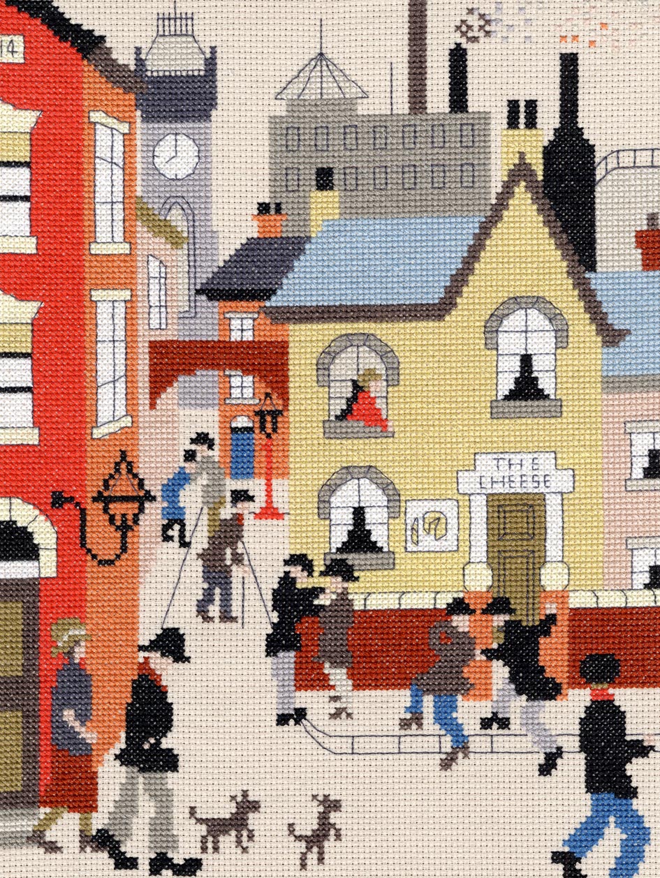 This counted cross stitch kit design is by Kate Hoyle in the style of L. S. Lowry.