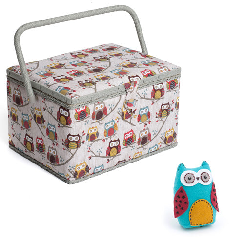 Hobbygift ~ Large Sewing Box / Basket and Pincushion ~ Hoot Owl