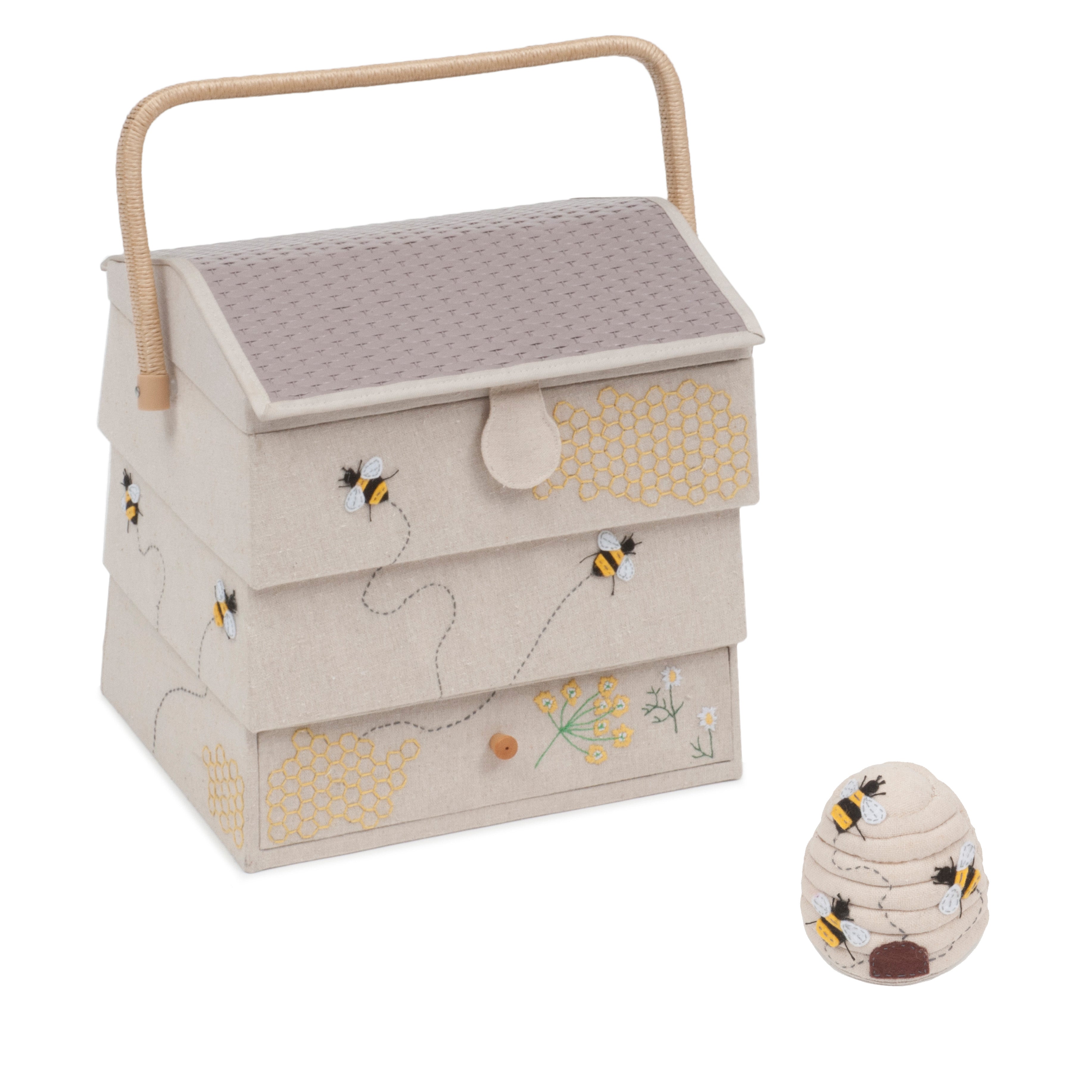 Hobbygift ~ Large Sewing Box / Basket with Drawer plus Pincushion ~ Bee / Beehive Design