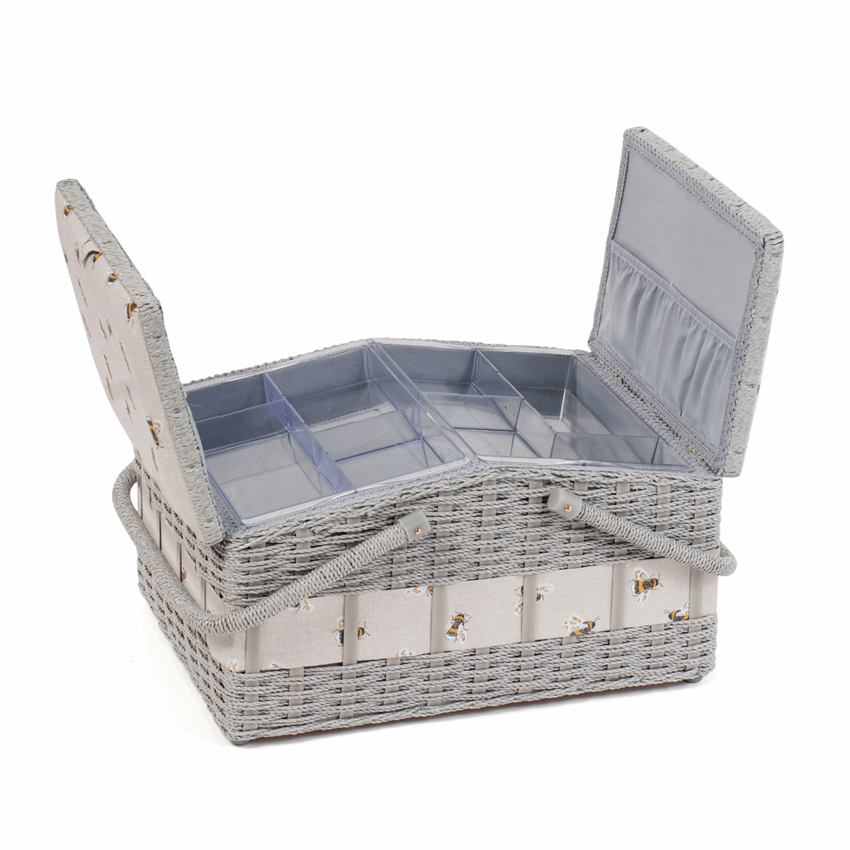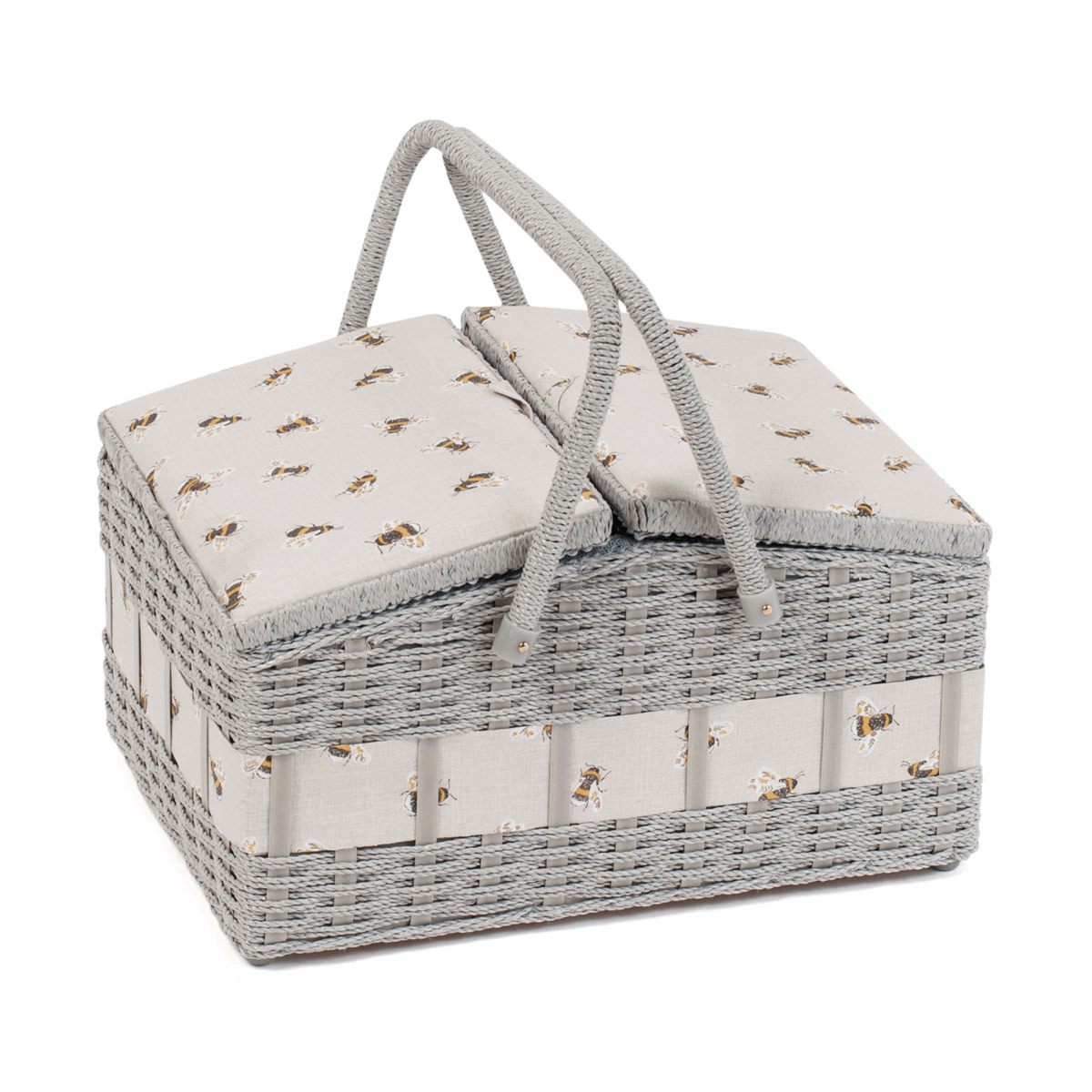 This stylish Sewing Bee Basket has wicker detail around the side and the top is covered in a beautiful fabric featuring a decorative bee print. The hamper style is perfect for storing all your sewing and craft essentials.