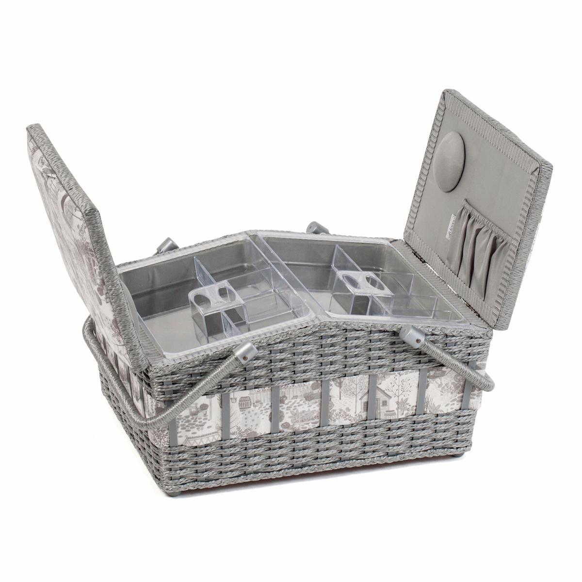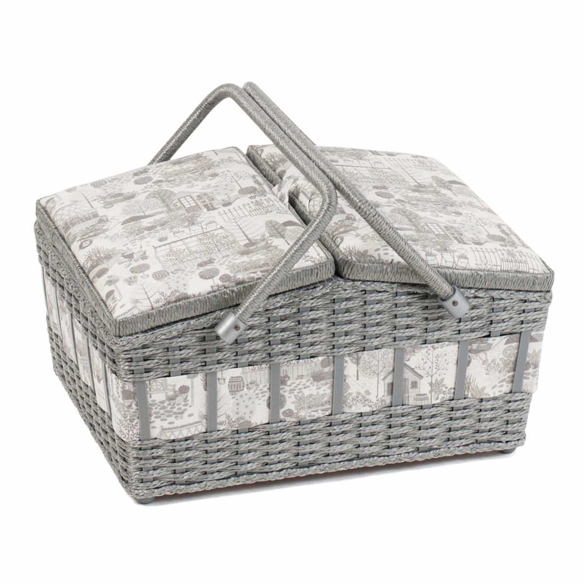This stylish sewing basket has wicker detail around the side and the top is covered in a beautiful fabric featuring a garden scene. The hamper style is perfect for storing all your sewing and craft essentials.