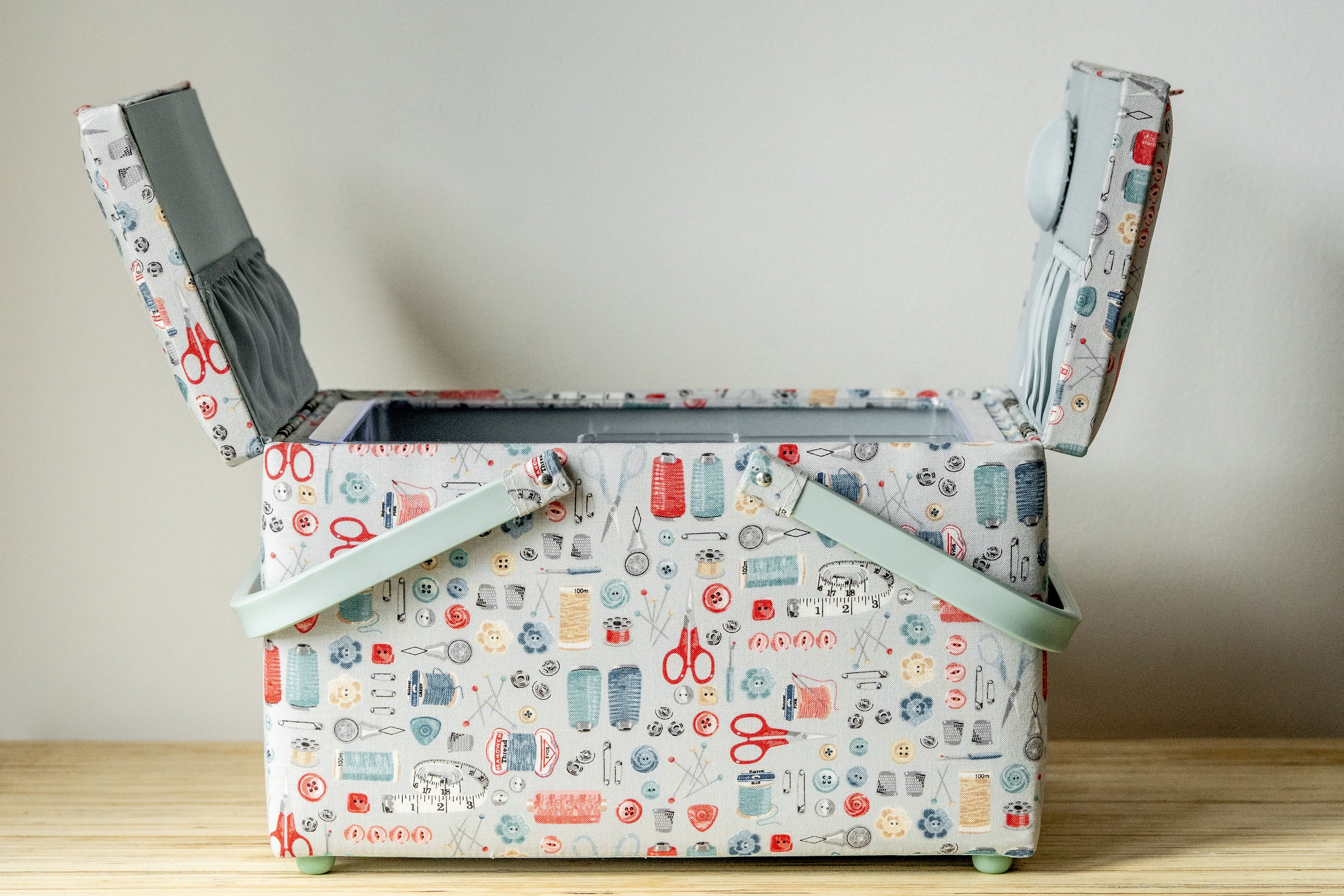 Hobbygift ~ Sewing Basket ~ Large Box with Twin Lid ~ A Stitch in Time