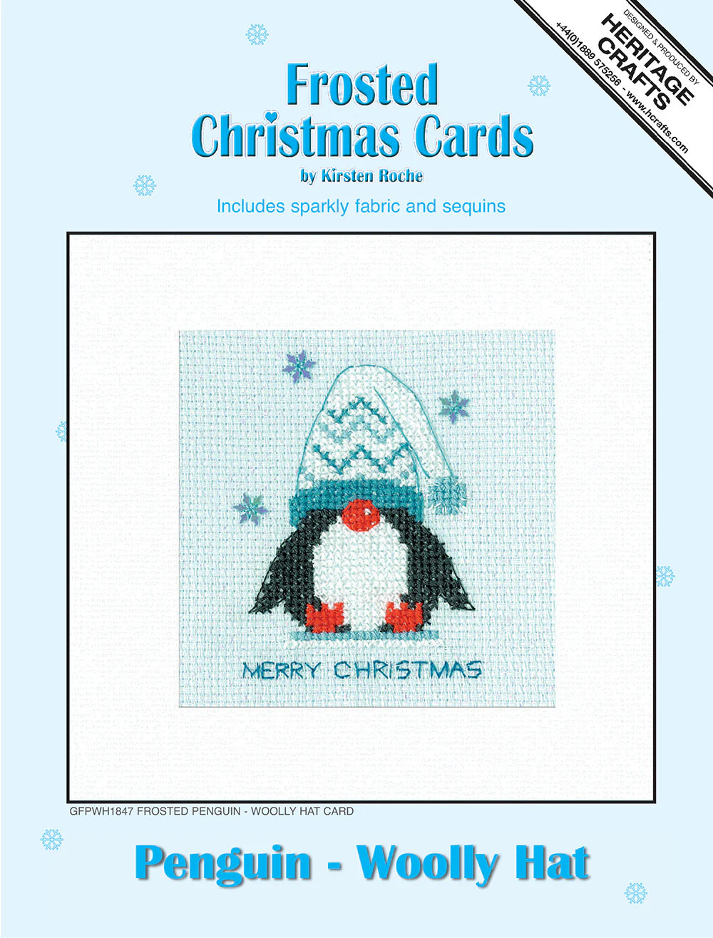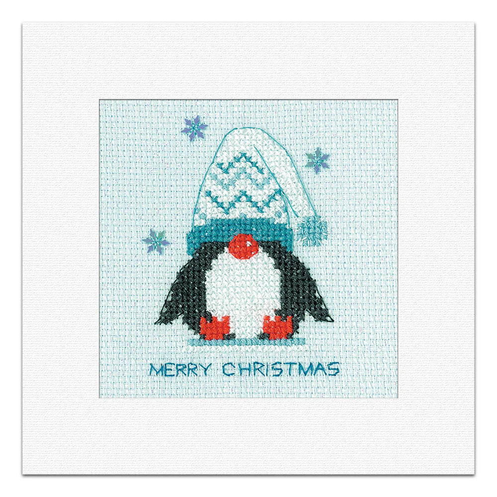Frosted Penguin Woolly Hat Christmas Card Cross Stitch Kit - Heritage Crafts