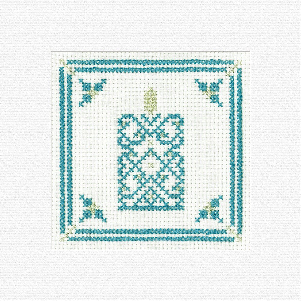 Teal Filigree Christmas Candle Card Cross Stitch Kit