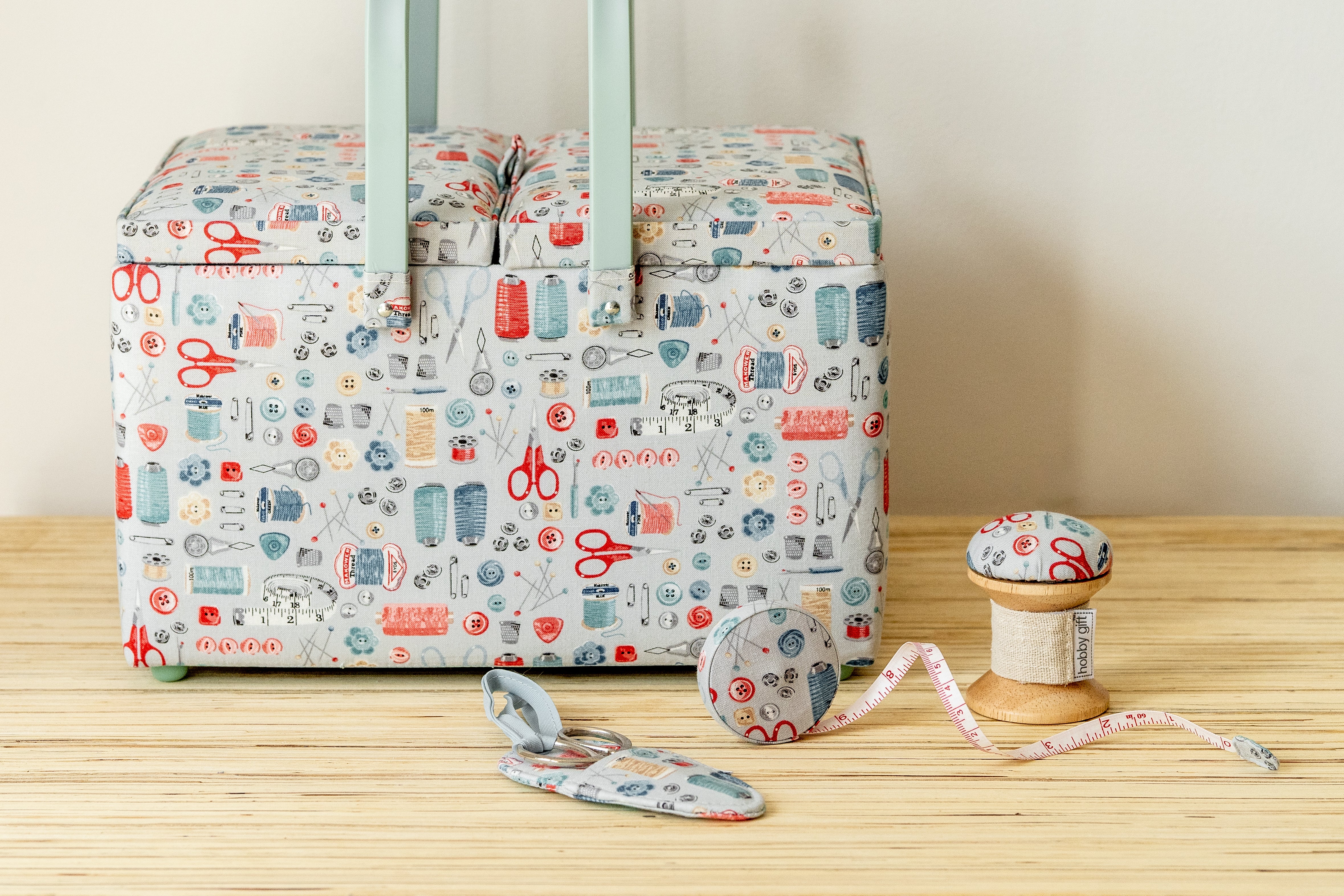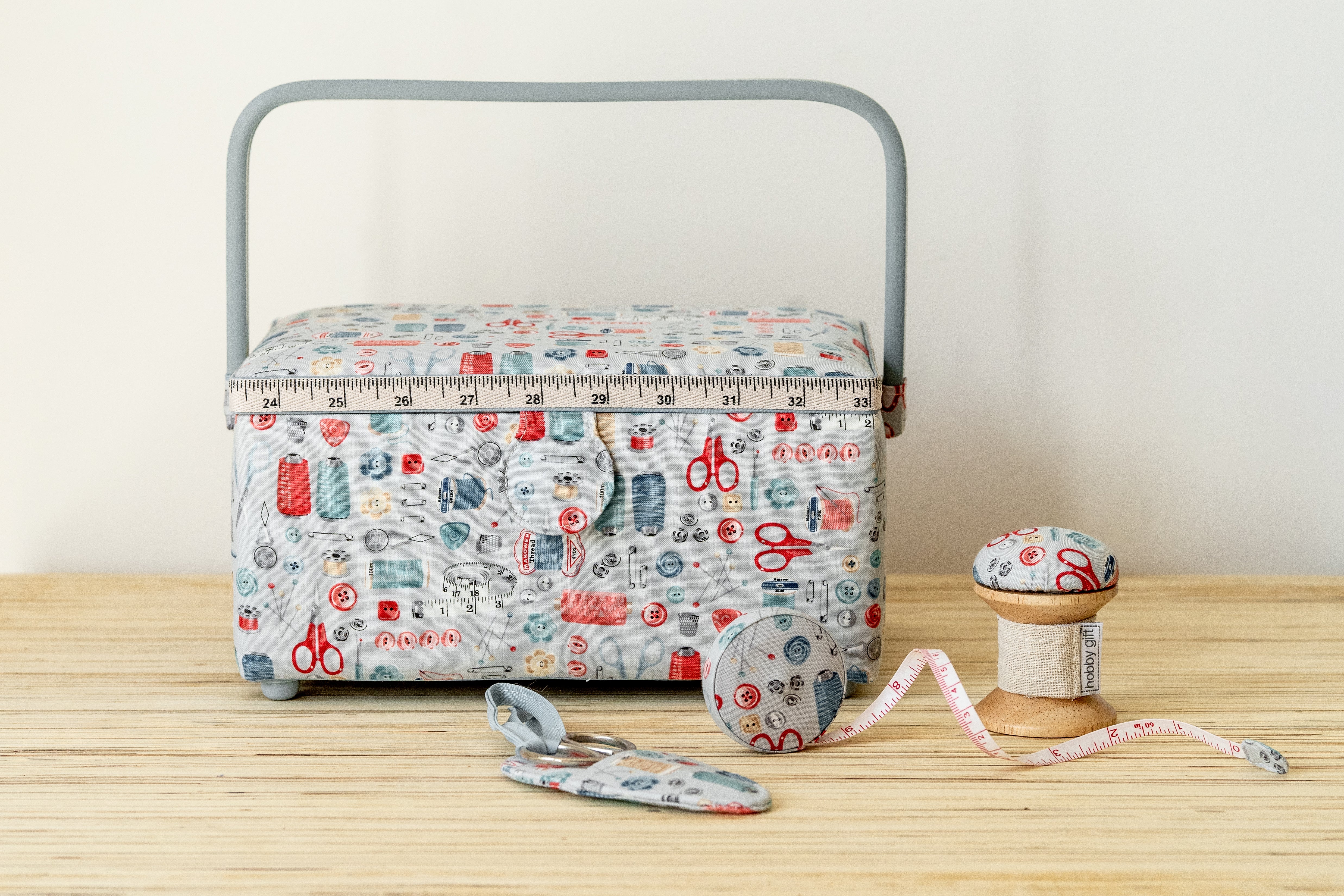 Medium Sewing Box, Pin Cushion, Tape Measure and Scissors in Case - Stitch In Time - Matching Set