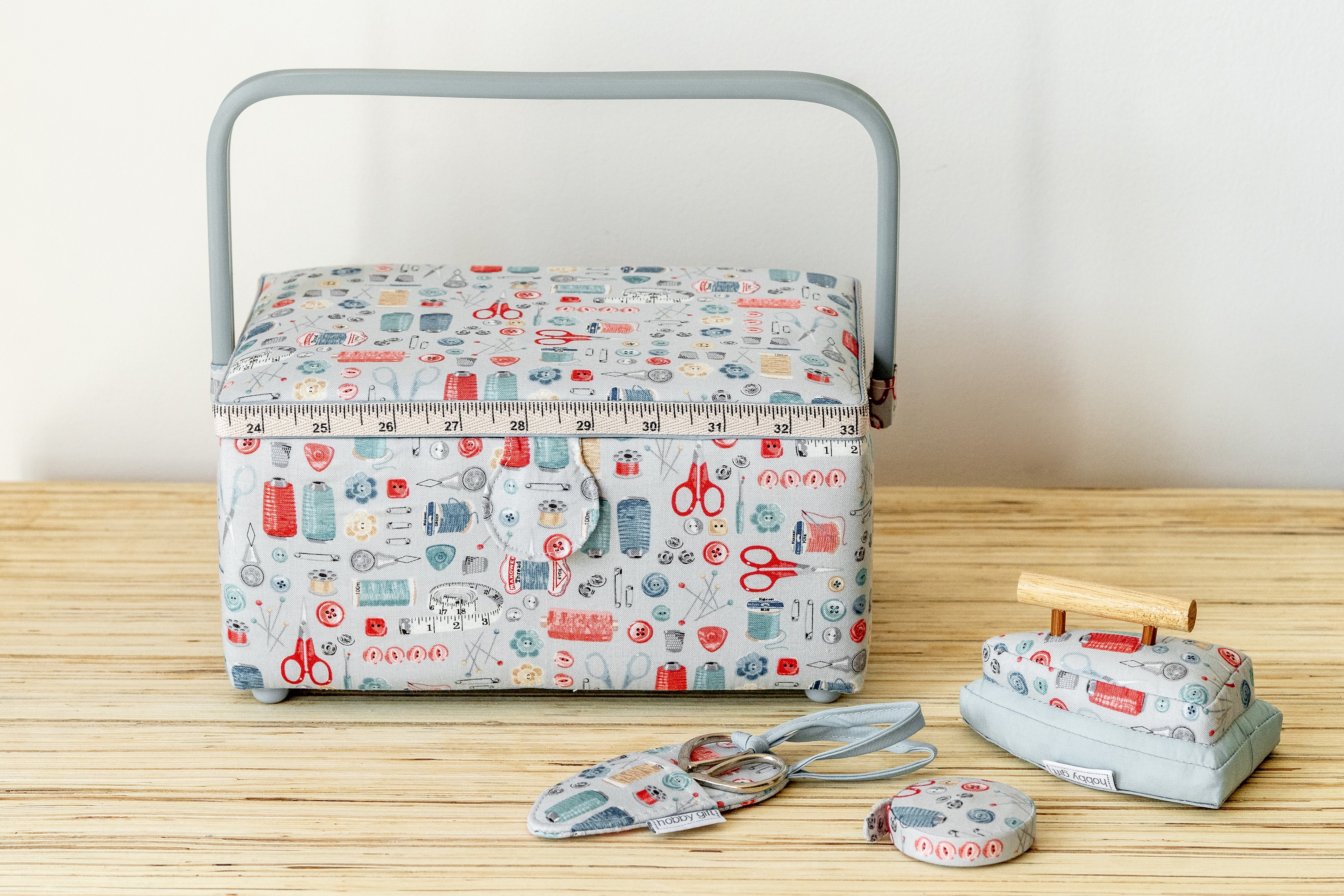 Medium Sewing Box, Iron Pin Cushion, Tape Measure and Scissors in Case - Stitch In Time - Matching Set