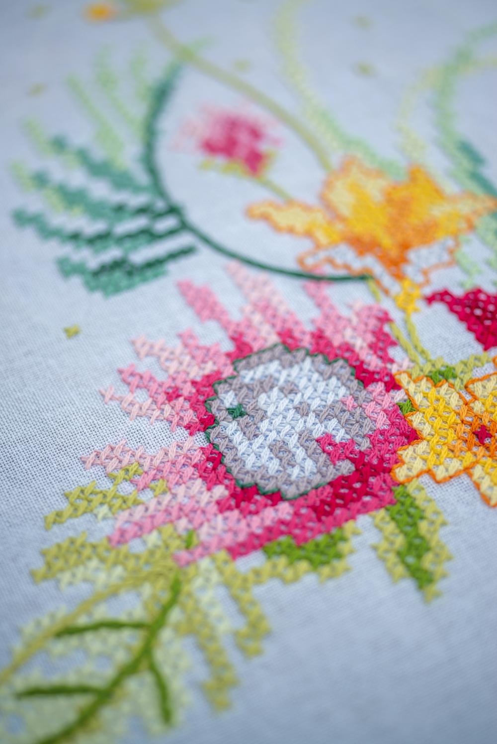 - Stitches used: french knot, cross stitch, stem stitch, back stitch.