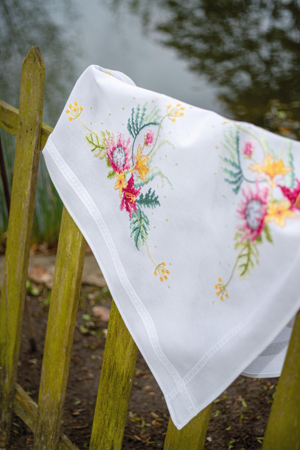 Tablecloth Embroidery Kit ~ Tropical Flowers