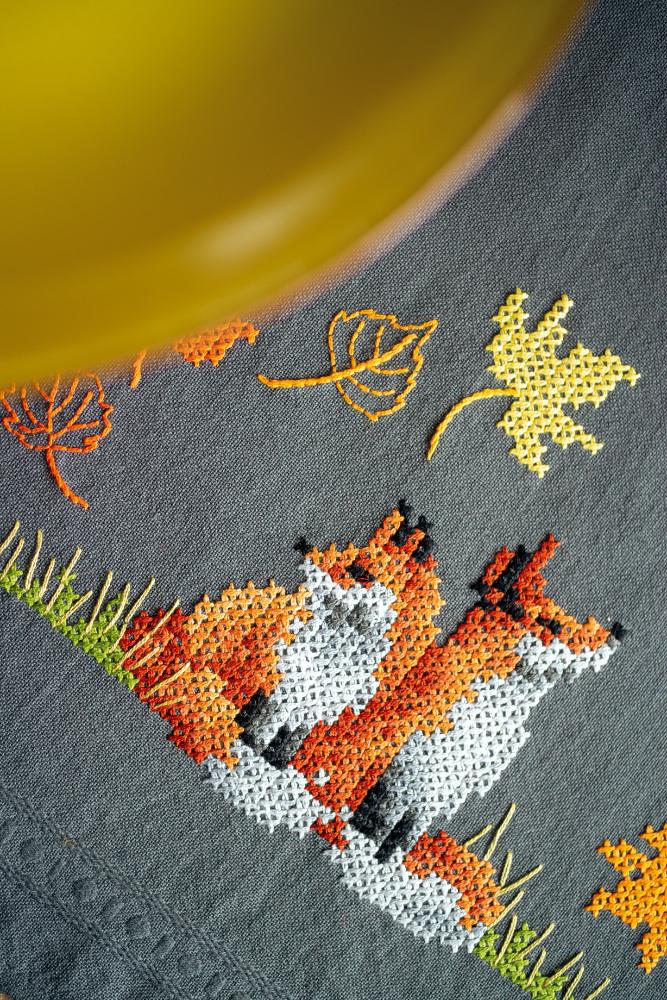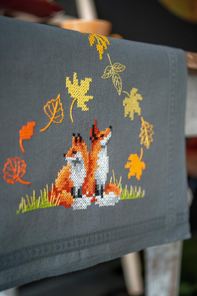 Tablecloth Embroidery Kit ~ Foxes in Autumn