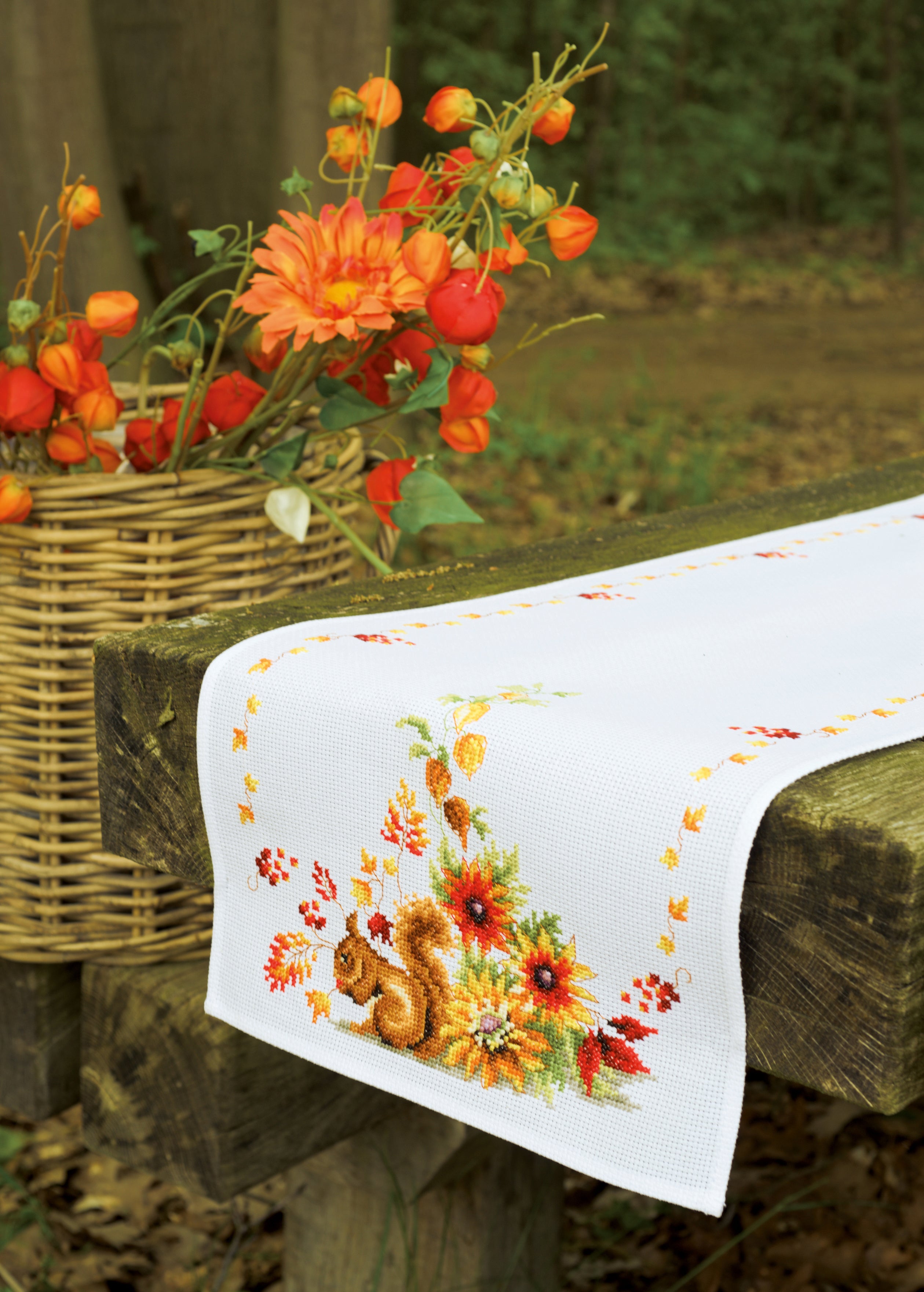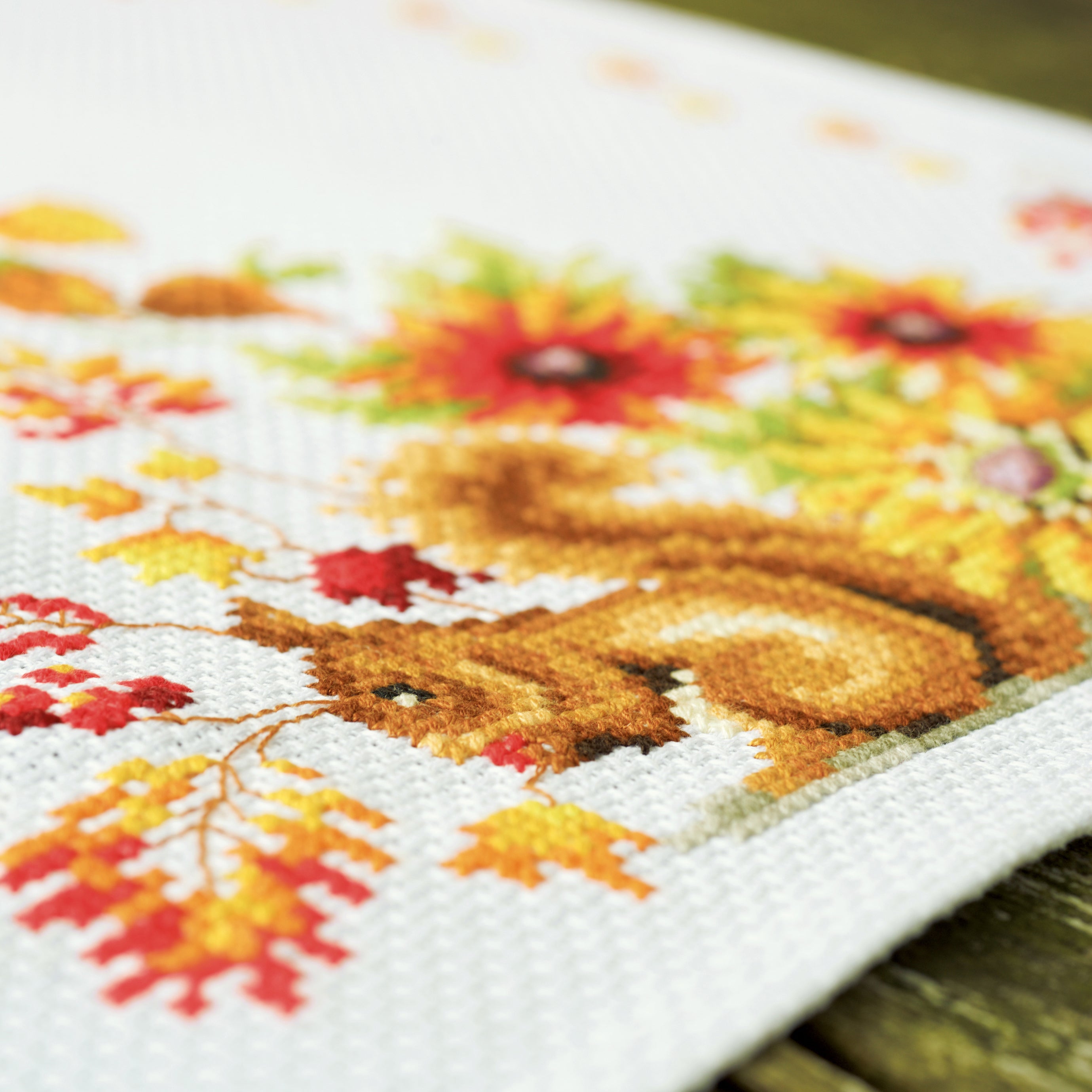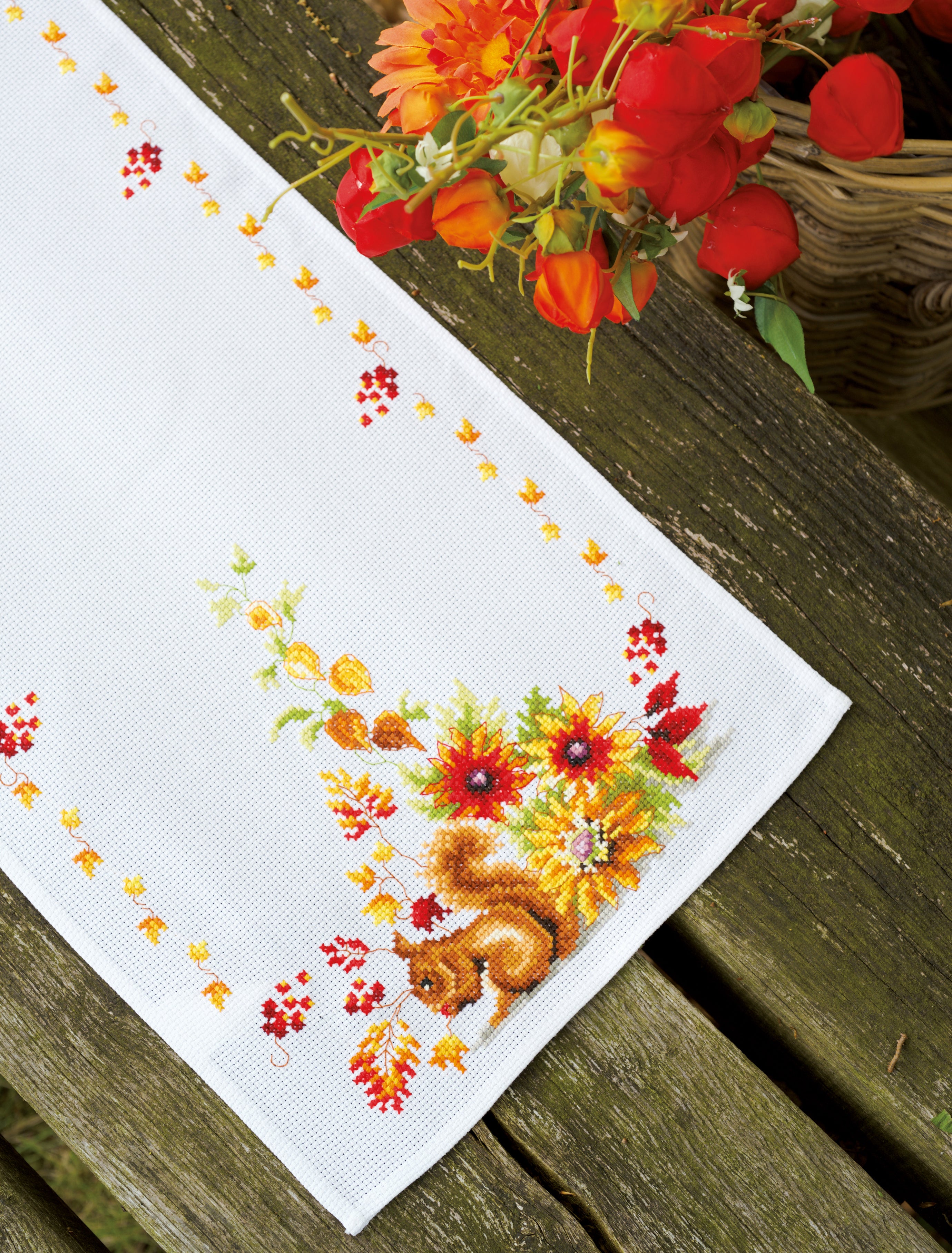 Counted Cross Stitch Kit Table Runner ~ Squirrel in Autumn