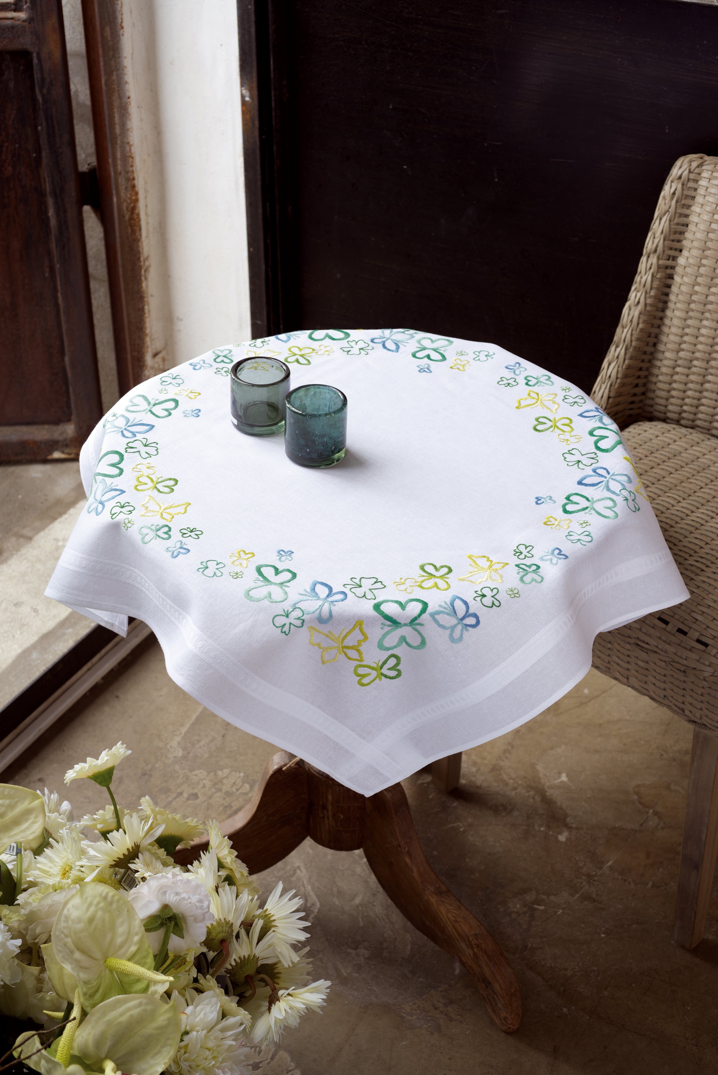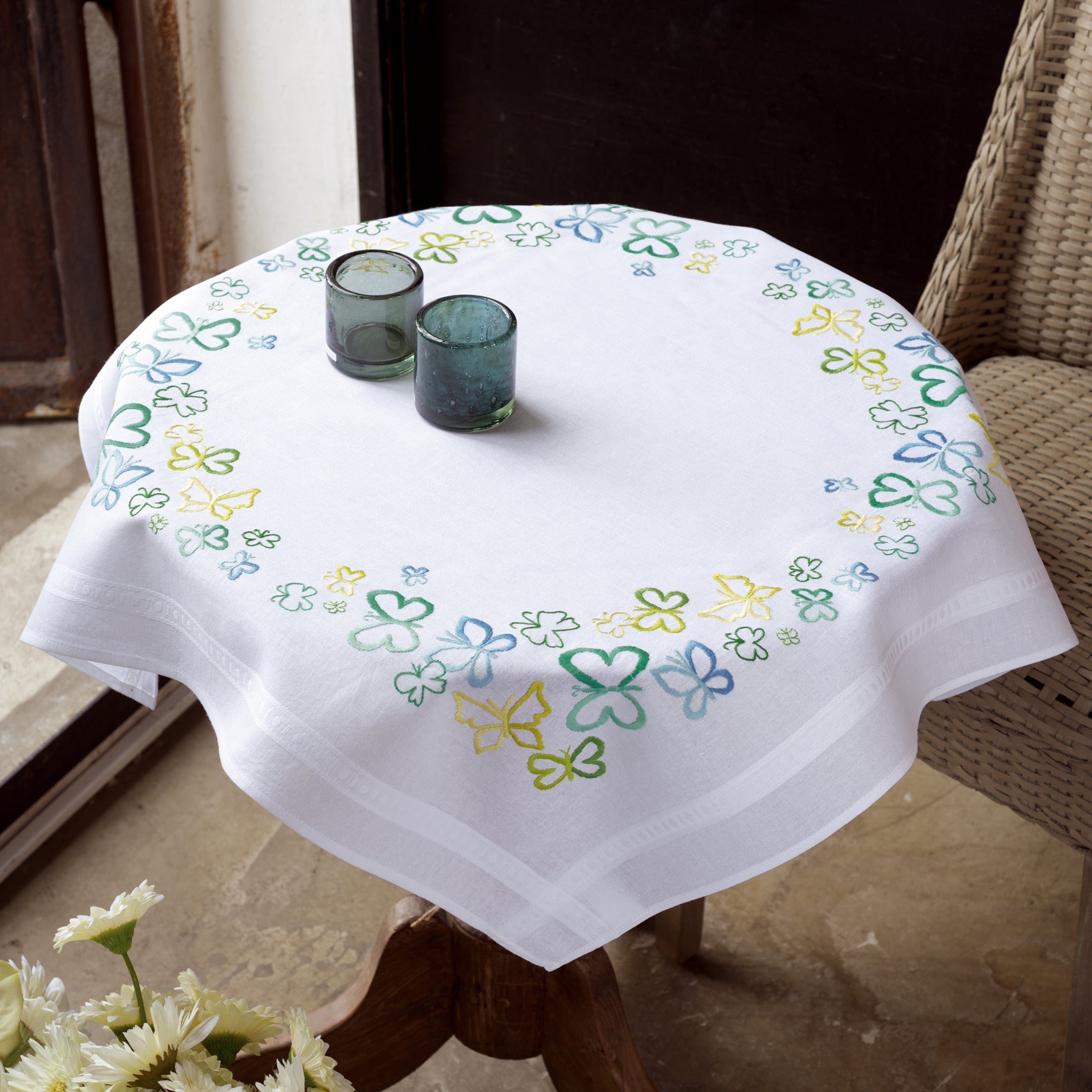 Embroidery Kit Tablecloth ~ Butterflies in Green