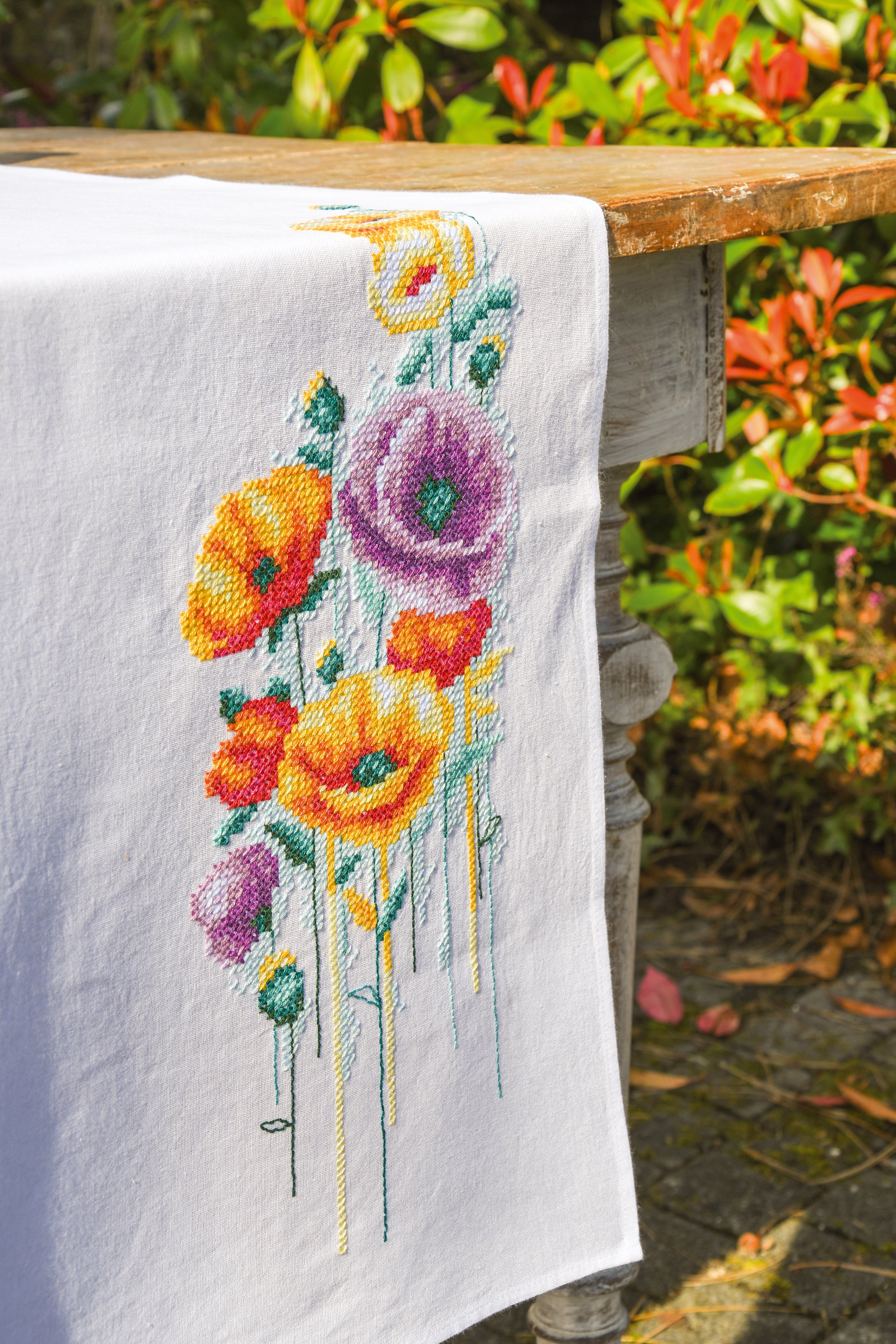 Poppies Table Runner Cross Stitch Kit - Vervaco