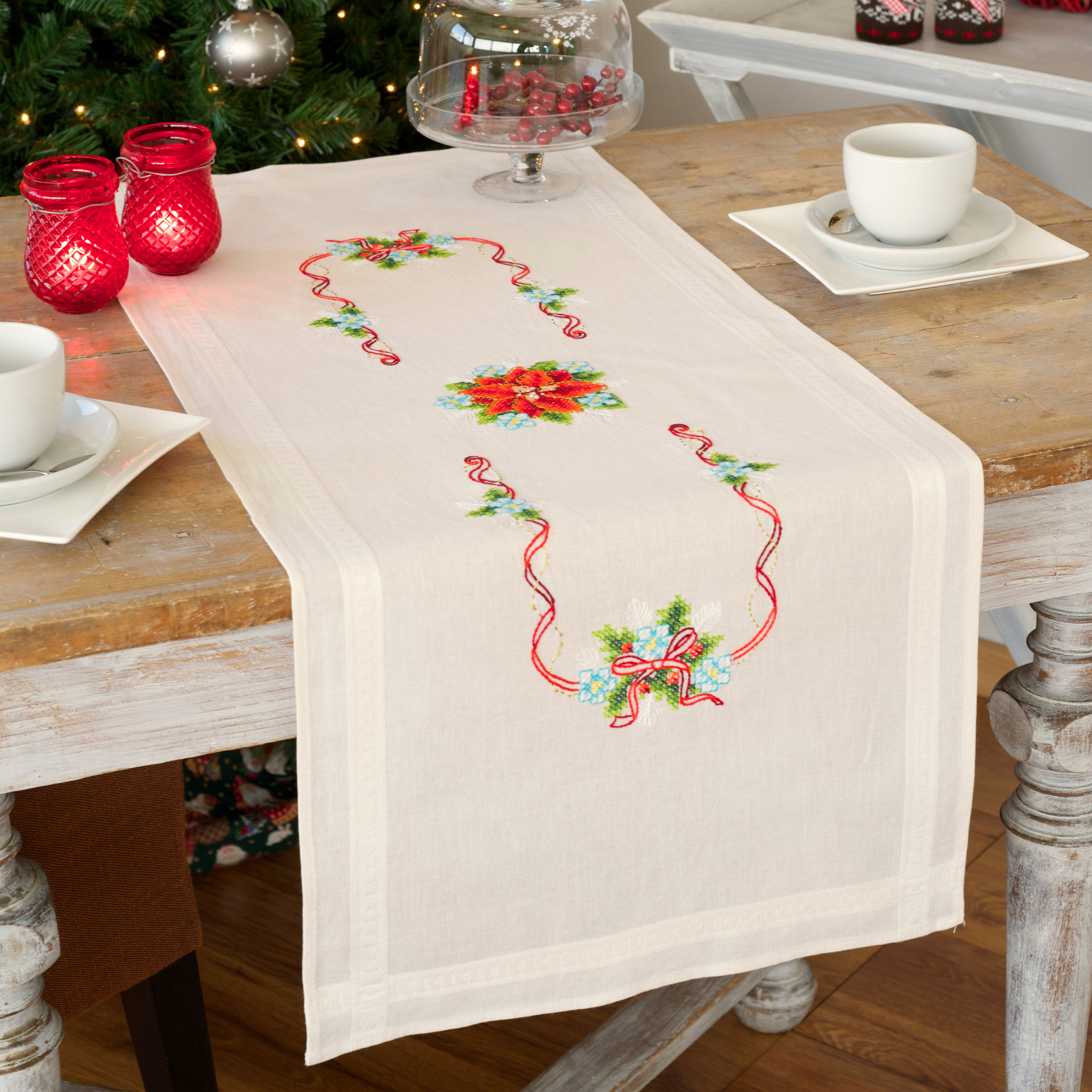 Table Runner Embroidery Kit ~ Poinsettia & Ribbon