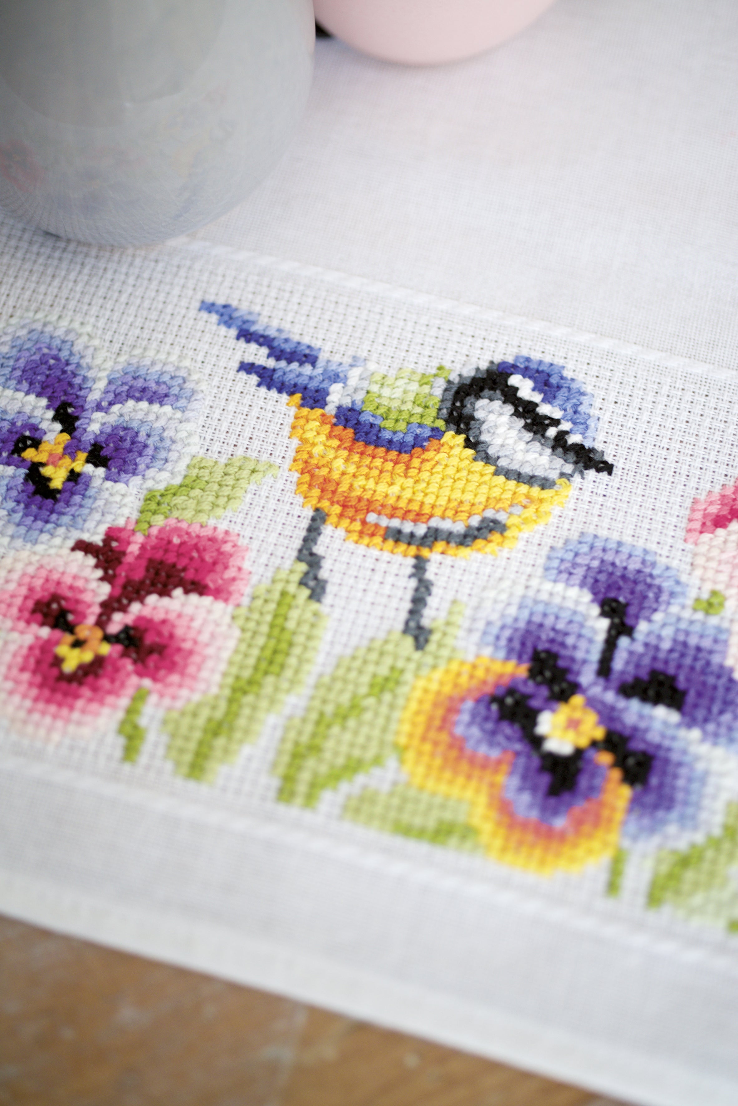 Tablecloth Cross Stitch Kit ~ Bird & Violets (Aida Border)