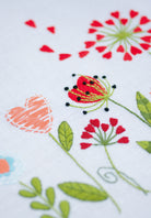 • Stitches used: French knot, loop stitch, satin stitch, long stitch, stem stitch, back stitch.