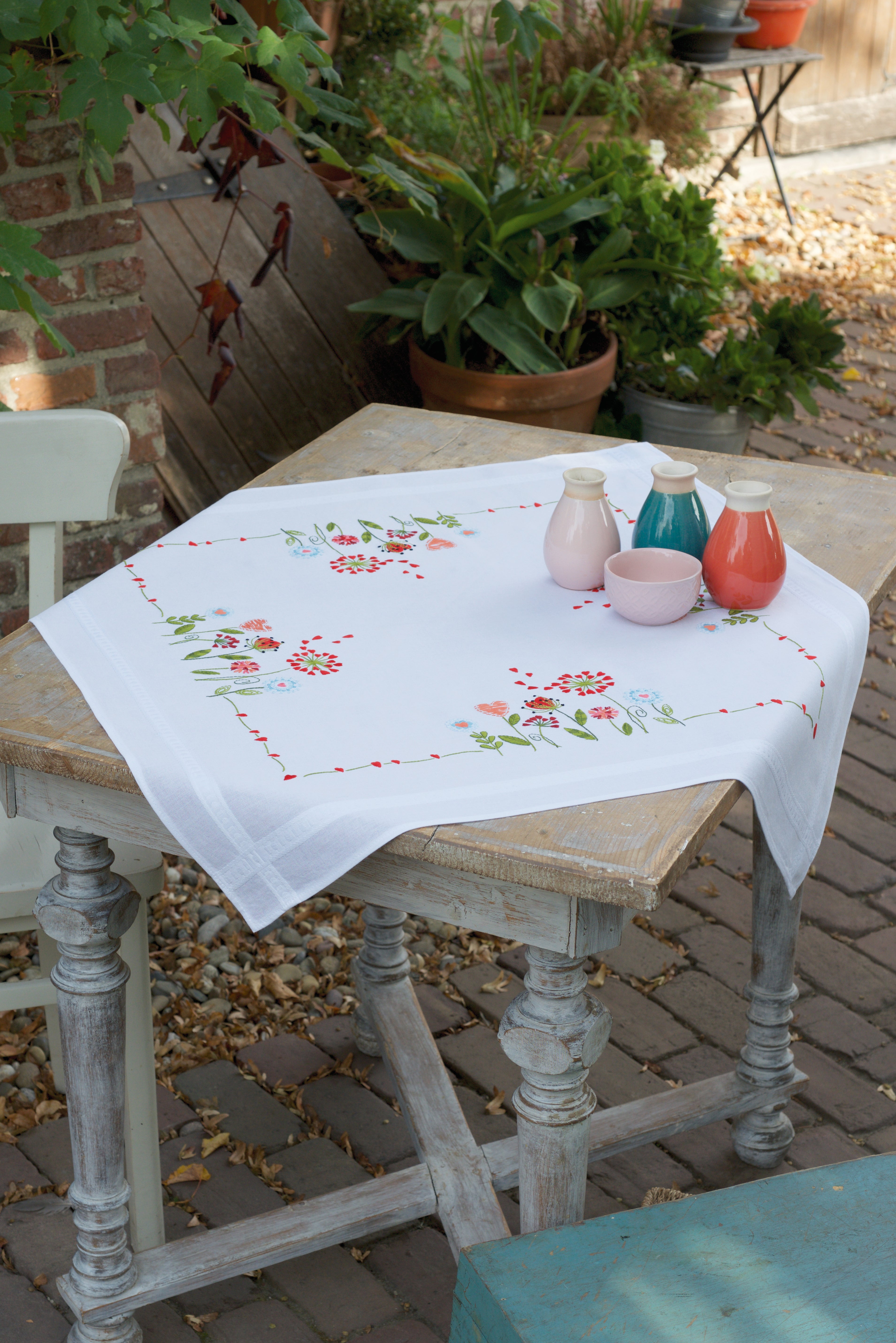 • Kit includes: white, cotton tablecloth with 10.5 count aida border; pre-sorted stranded cotton threads; large-square charted design; frontsheet picture; instructions in 8 languages (EN, NL, FR, GER, IT, SP, RU, SW).