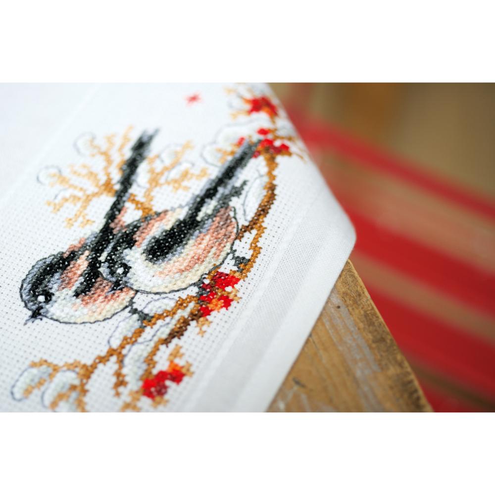 Tablecloth Counted Cross Stitch Kit ~ Long-Tailed Tits & Red Berries (Aida Border)
