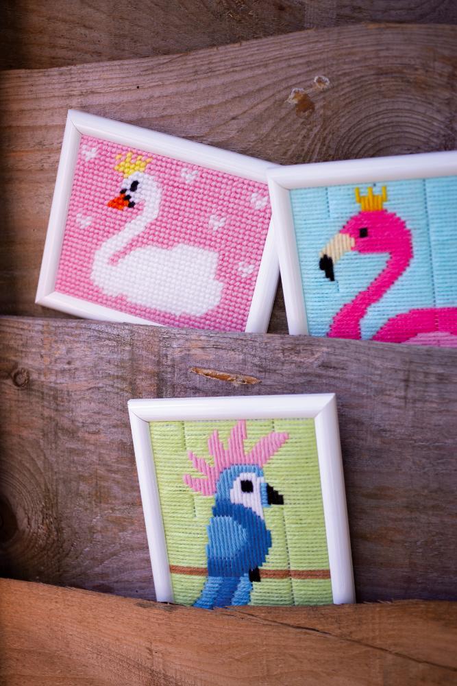 • Kit includes: printed, large hole, cotton canvas, 26 holes/10cm, 6.5 stitches/inch; thick acrylic yarn; needle; front sheet picture; instructions in 8 languages (EN, NL, FR, GER, IT, SP, RU, SW).