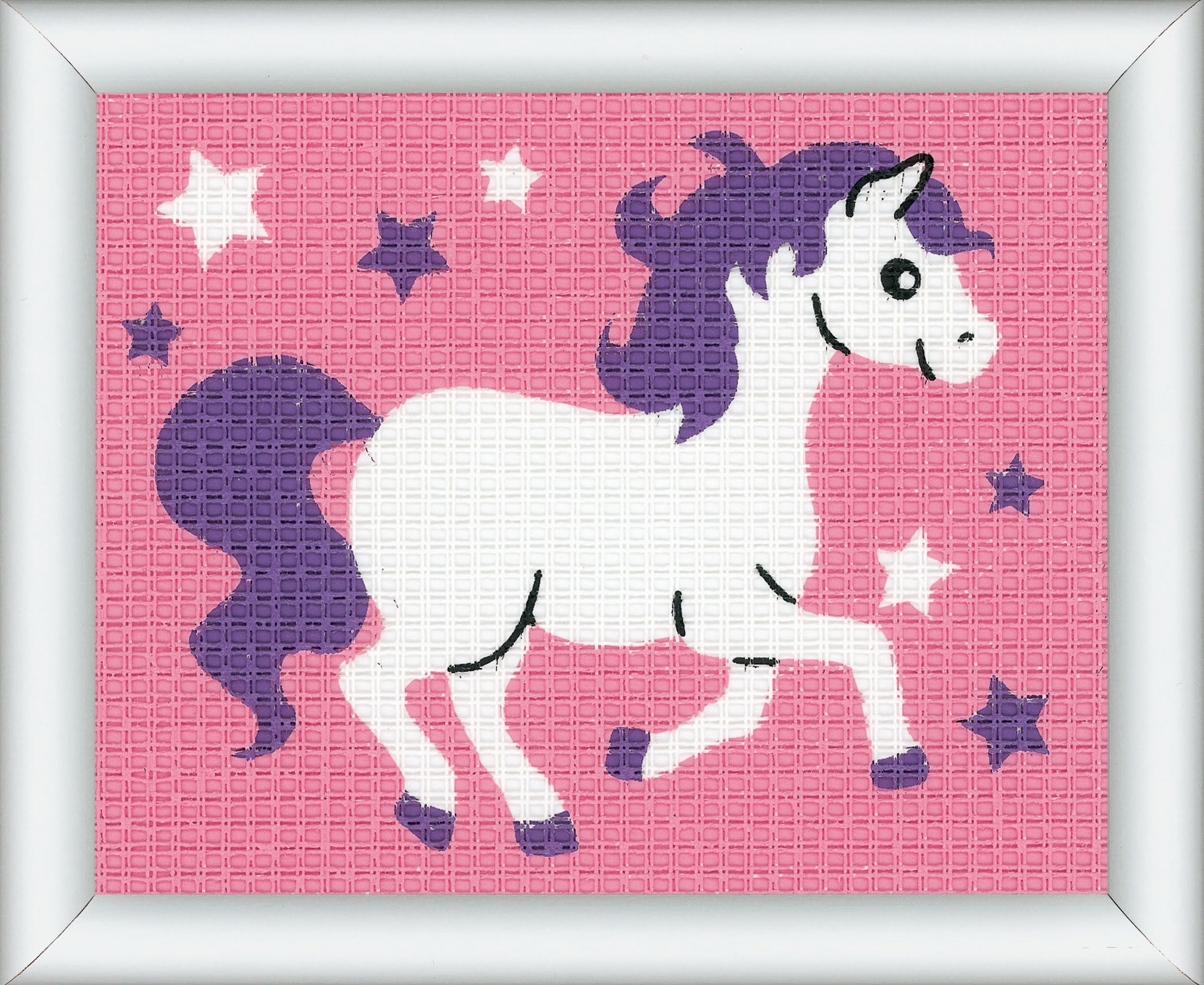 - Kit includes: printed, large hole, white, cotton canvas, 26 holes/10cm, 6.5 stitches/inch; thick acrylic yarn; needle; front sheet picture; instructions in 8 languages (EN, NL, FR, GER, IT, SP, RU, SW)