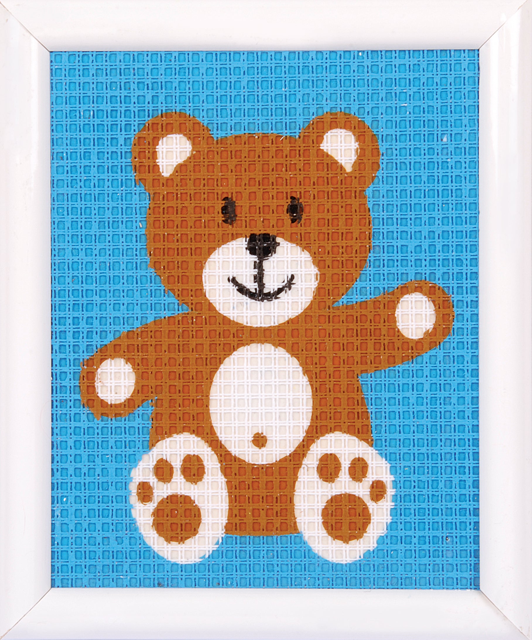 - Kit includes: printed, large hole, white, cotton canvas, 26 holes/10cm, 6.5 stitches/inch; thick acrylic yarn; needle; front sheet picture; instructions in 8 languages (EN, NL, FR, GER, IT, SP, RU, SW).