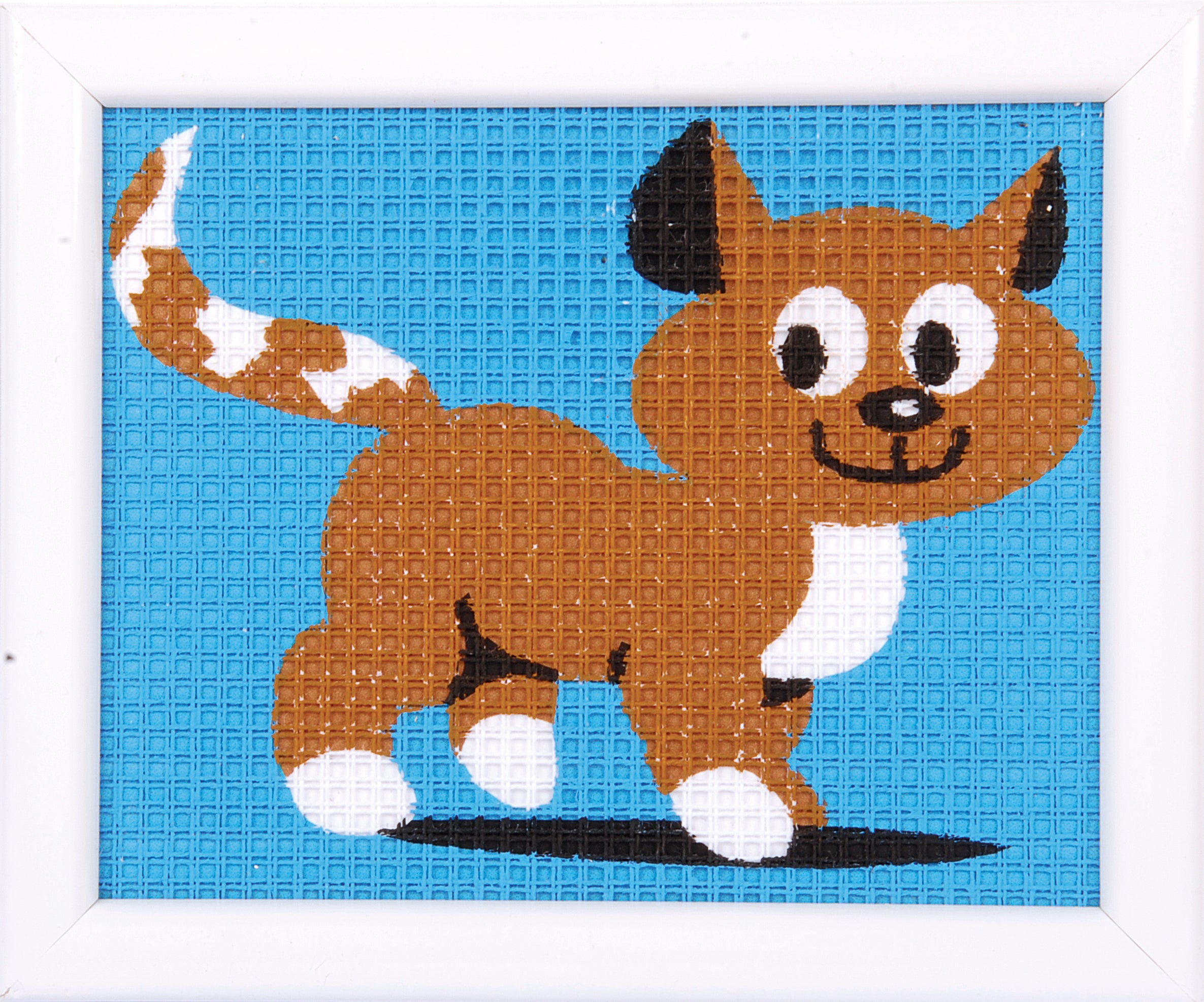 - Kit includes: printed, large hole, white, cotton canvas, 26 holes/10cm, 6.5 stitches/inch; thick acrylic yarn; needle; front sheet picture; instructions in 8 languages (EN, NL, FR, GER, IT, SP, RU, SW).