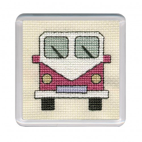 Textile Heritage ~ Counted Cross Stitch Kit ~ Coaster ~ Campervan Pink