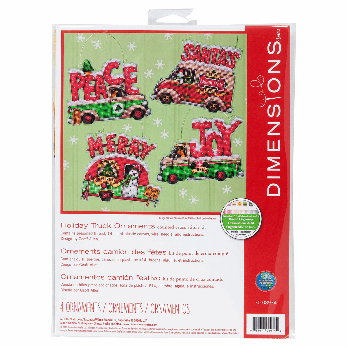 Dimensions ~ Counted Cross Stitch Kit ~ Holiday Truck Ornament Set