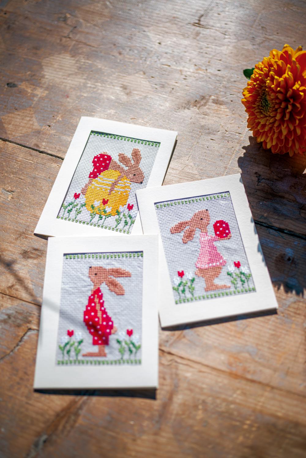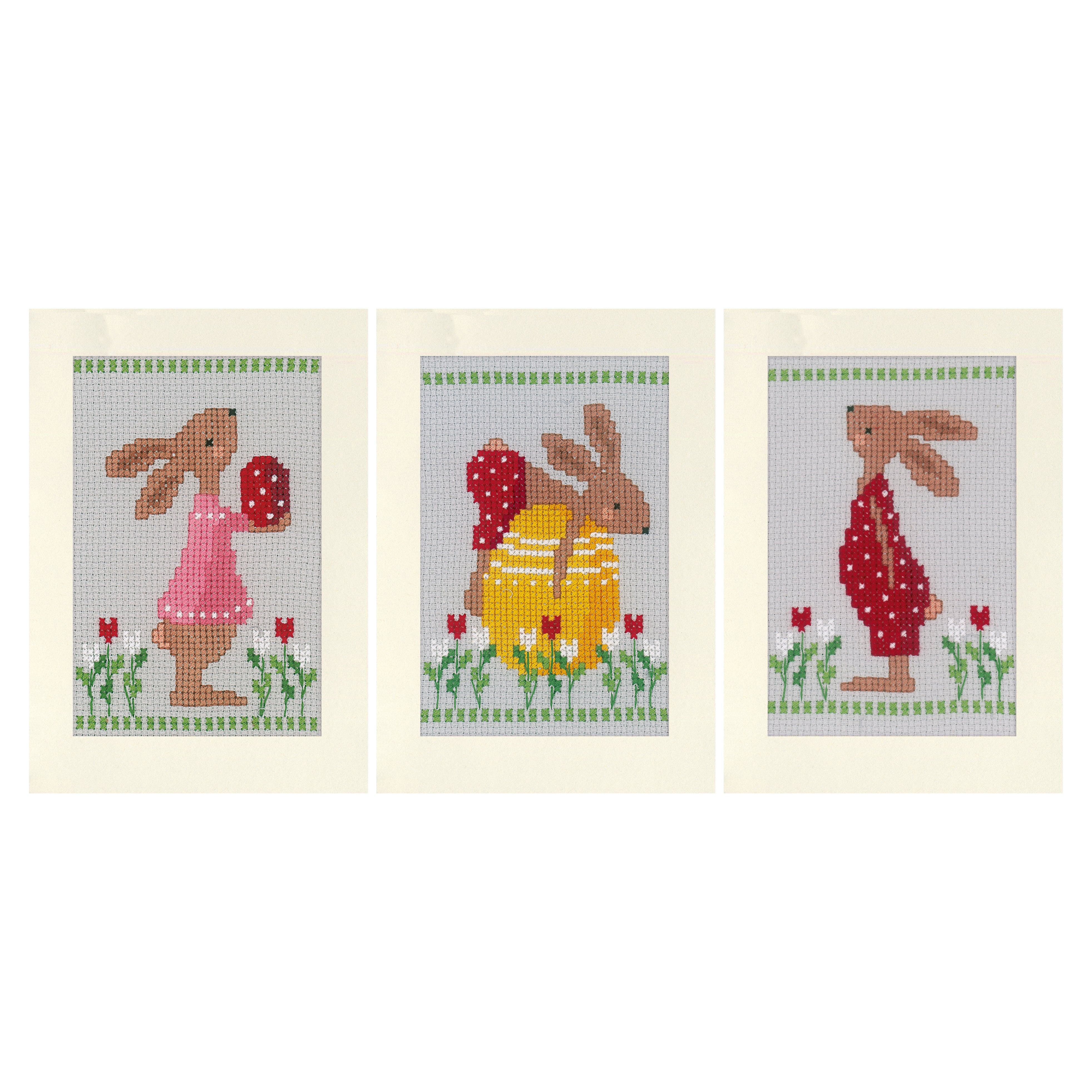 Counted Cross Stitch Kit Greeting Cards ~ Easter Rabbits Set of 3