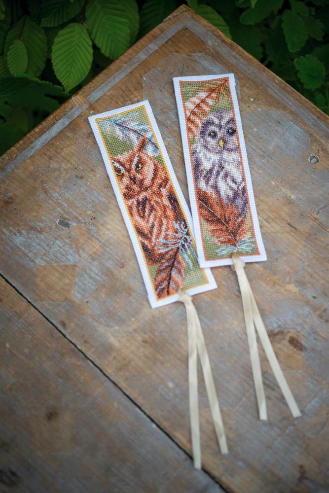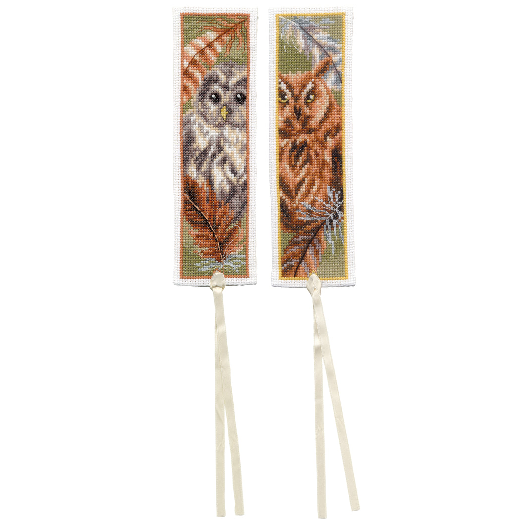 Counted Cross Stitch Kit Bookmark ~ Owl with Feathers Set of 2