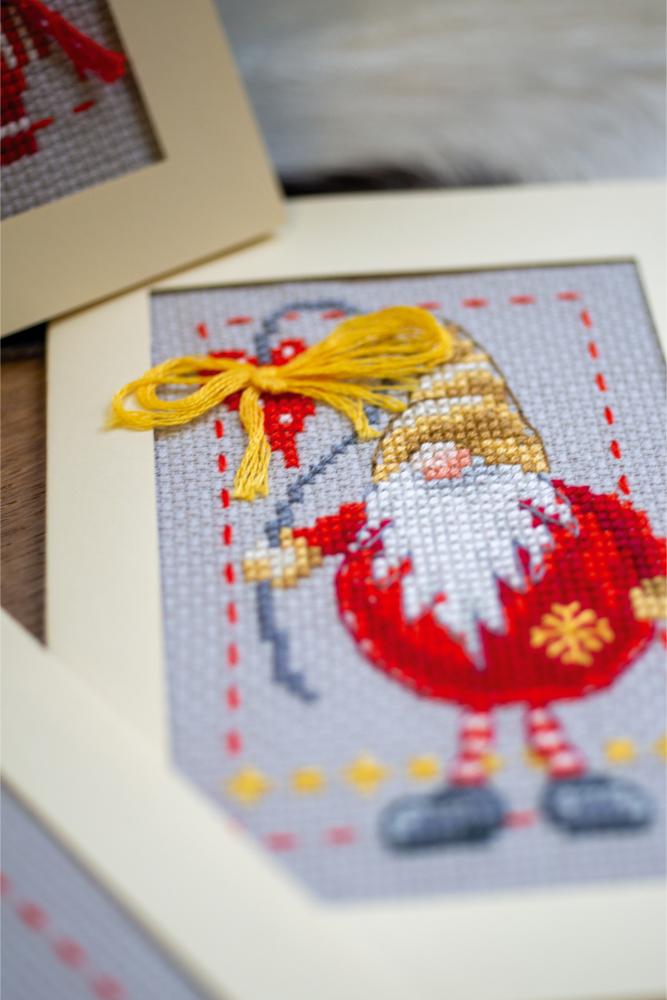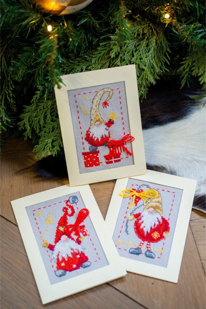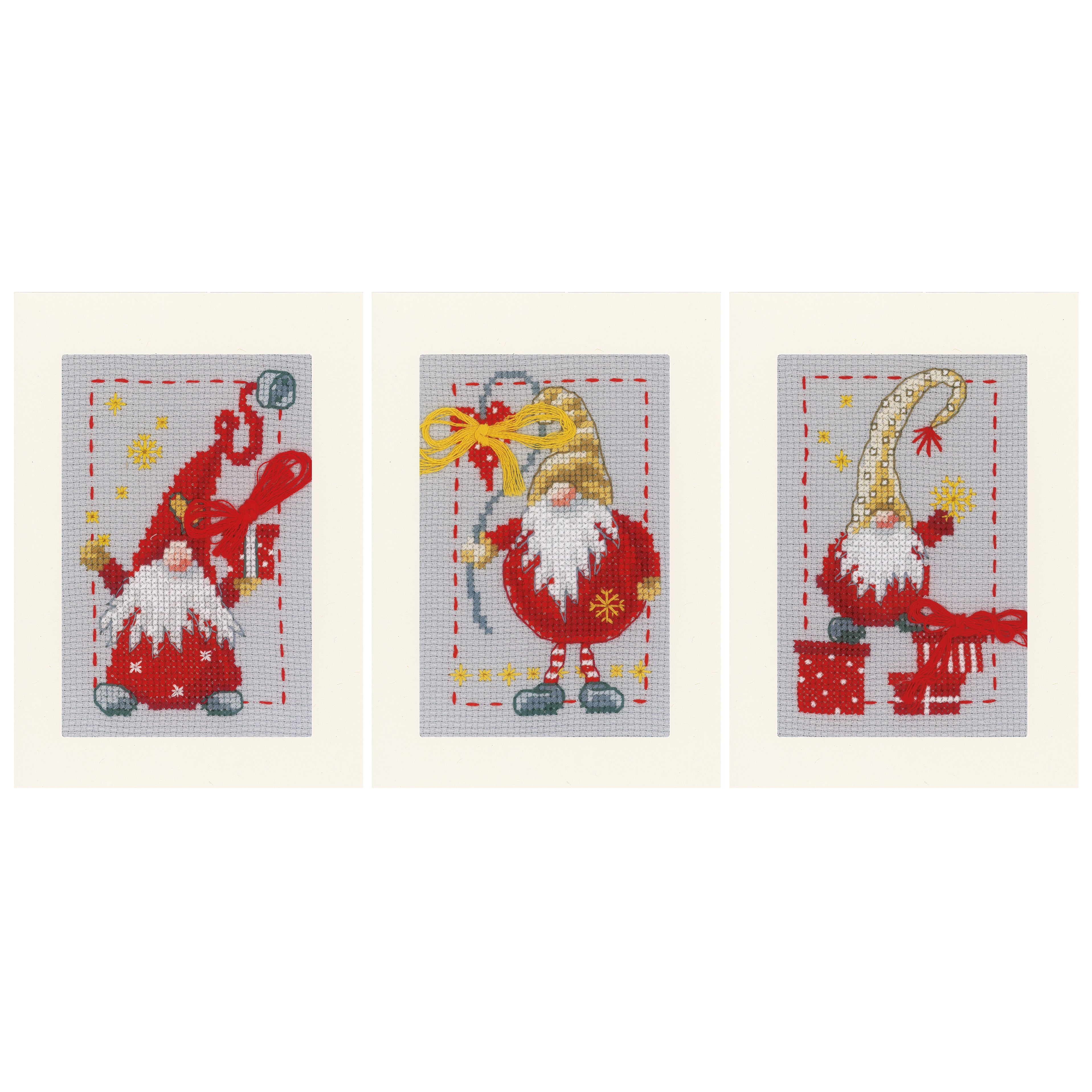Counted Cross Stitch Kit ~ Greetings Cards Christmas Gnomes Set of 3