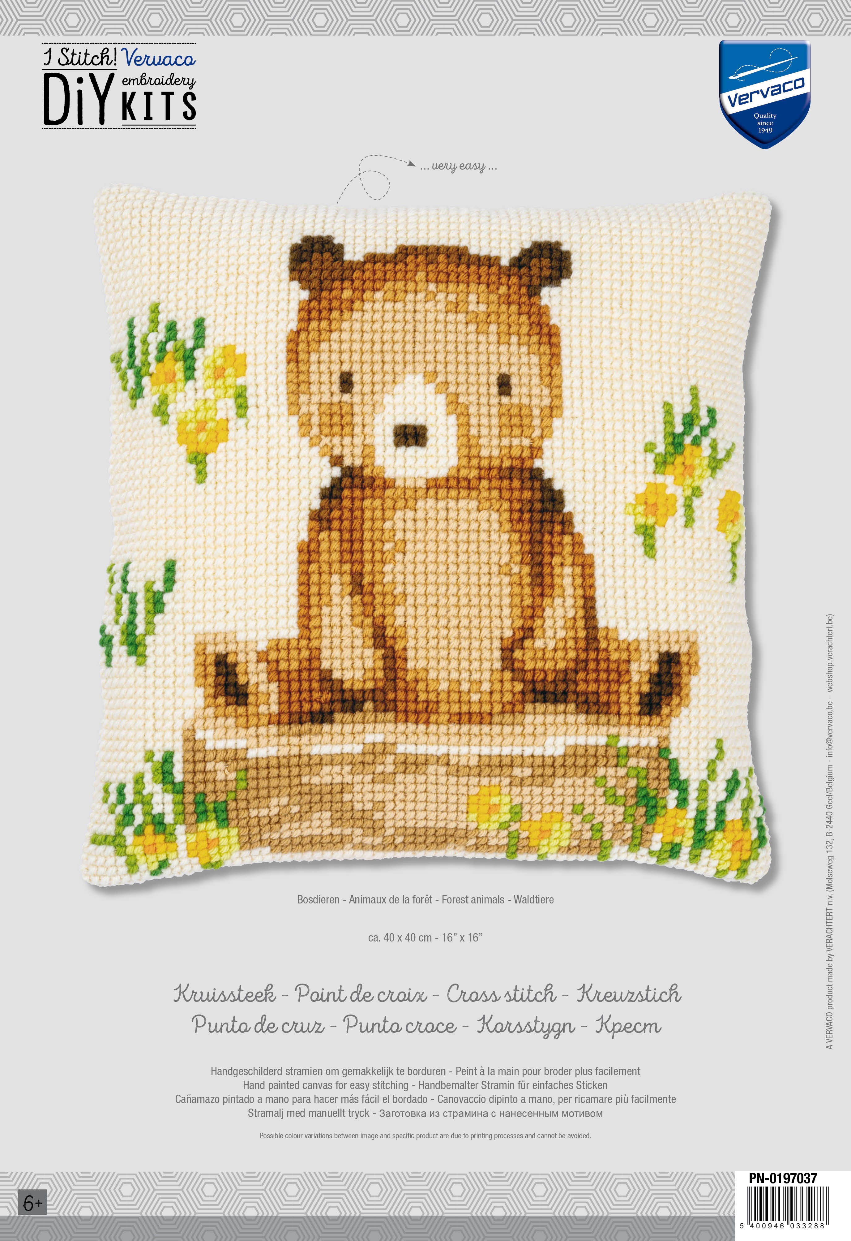 - Kit includes: hand painted large hole canvas; thick acrylic yarn; needle; "I Stitch by Vervaco" DIY-label; front sheet picture and instructions in eight languages (EN, NL, FR, GER, IT, SP, RU, SW).