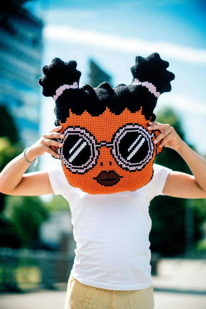 - Kit includes: hand-painted, cotton, large hole canvas fabric (18 holes/10cm, 4.5 stitches/inch); thick acrylic yarn; needle, label, cushion back, front sheet picture and instructions in 8 languages (EN, NL, FR, GER, IT, SP, RU, SW).